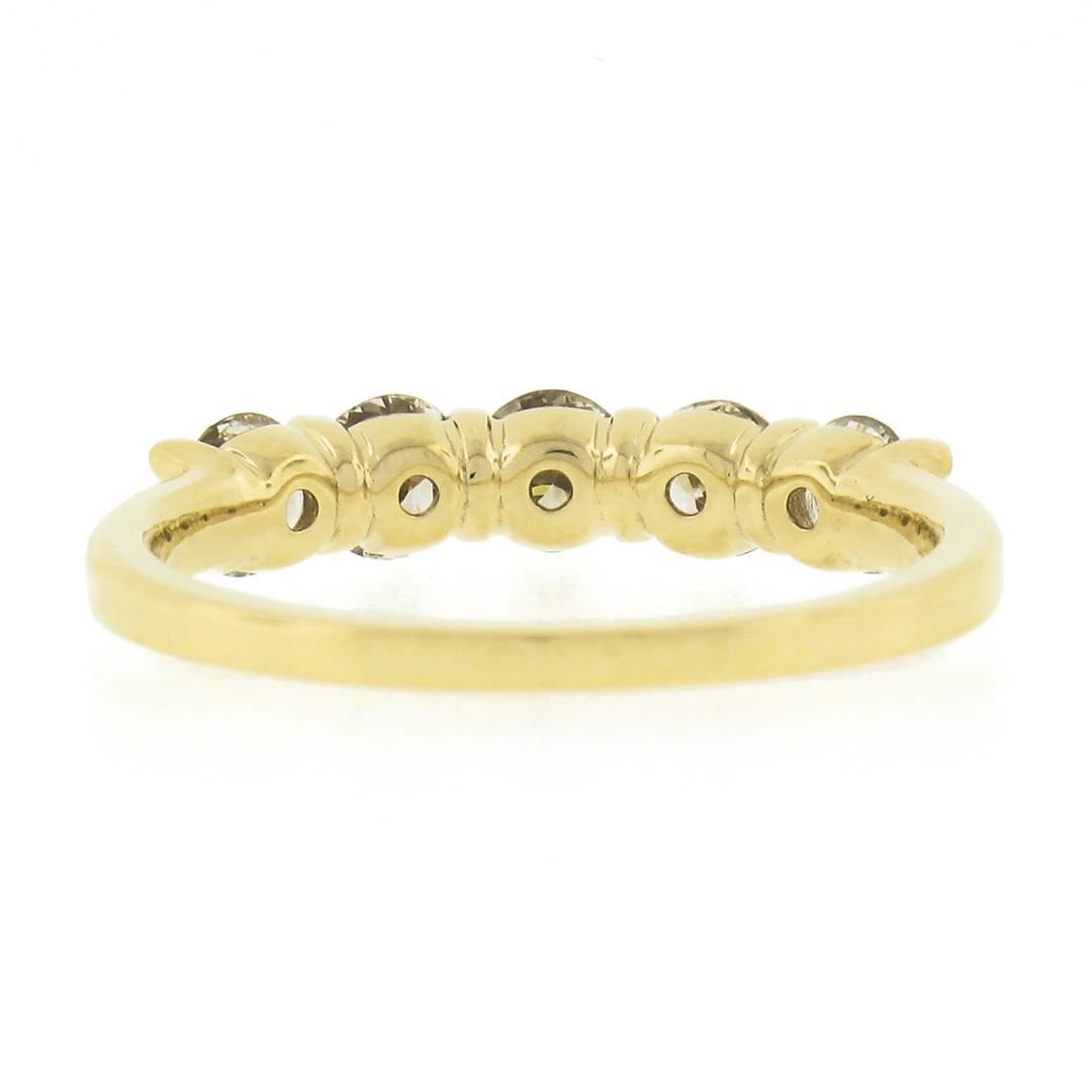 a new solid 18k yellow gold band ring, with 5 round cut natural diamonds (K-L / Light Brown - SI1-SI2 ; 0.92ctw). The ring is size 6.5, weighs a total of 2.75 grams, and measures 3.8mm wide.
