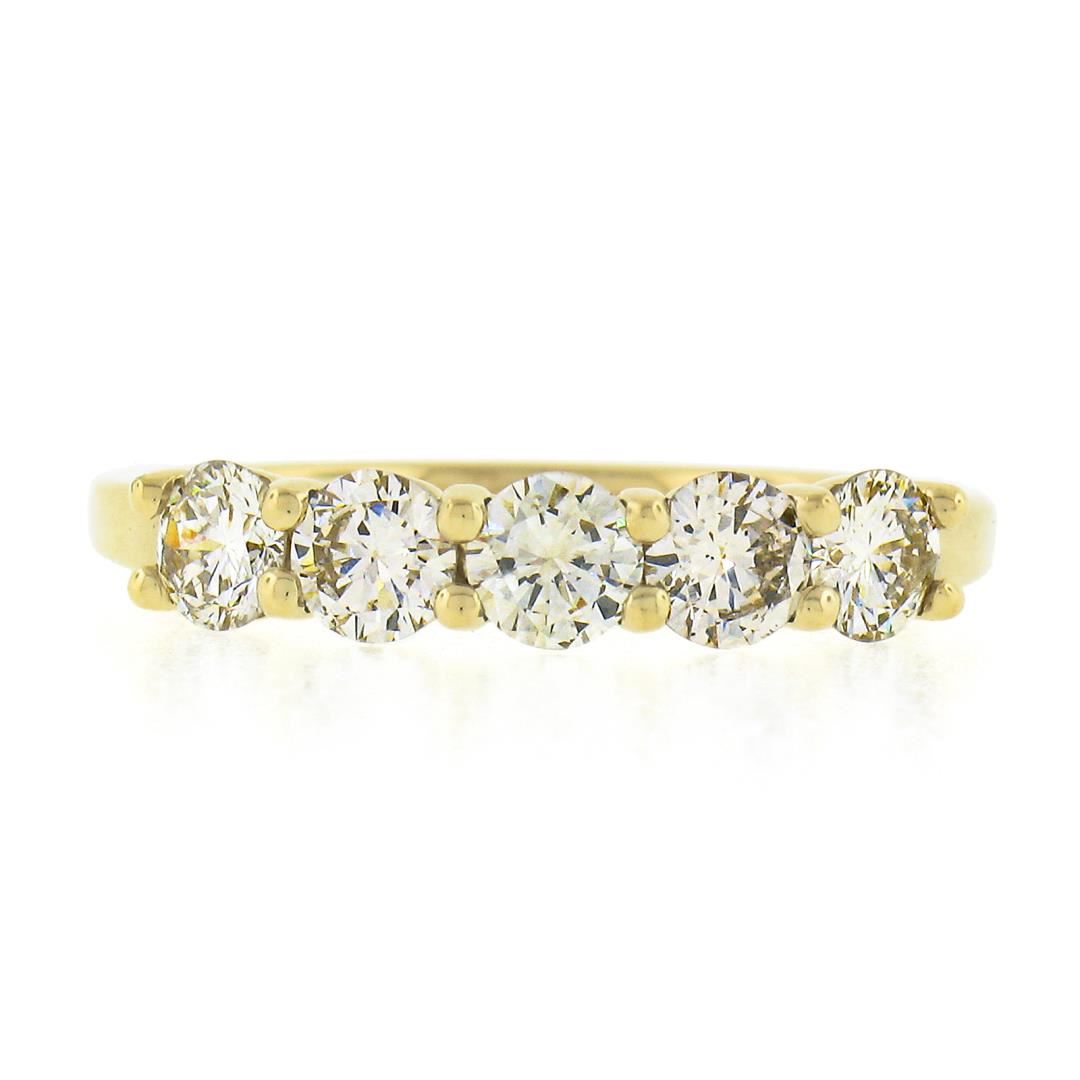 a new solid 18k yellow gold band ring, with 5 round cut natural diamonds (K-L / Light Brown - SI1-SI2 ; 0.92ctw). The ring is size 6.5, weighs a total of 2.75 grams, and measures 3.8mm wide.