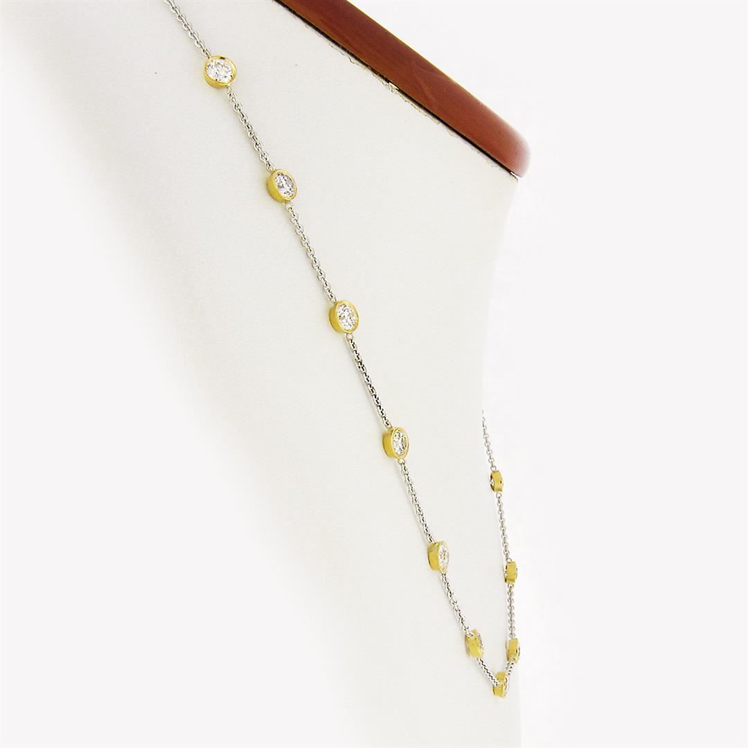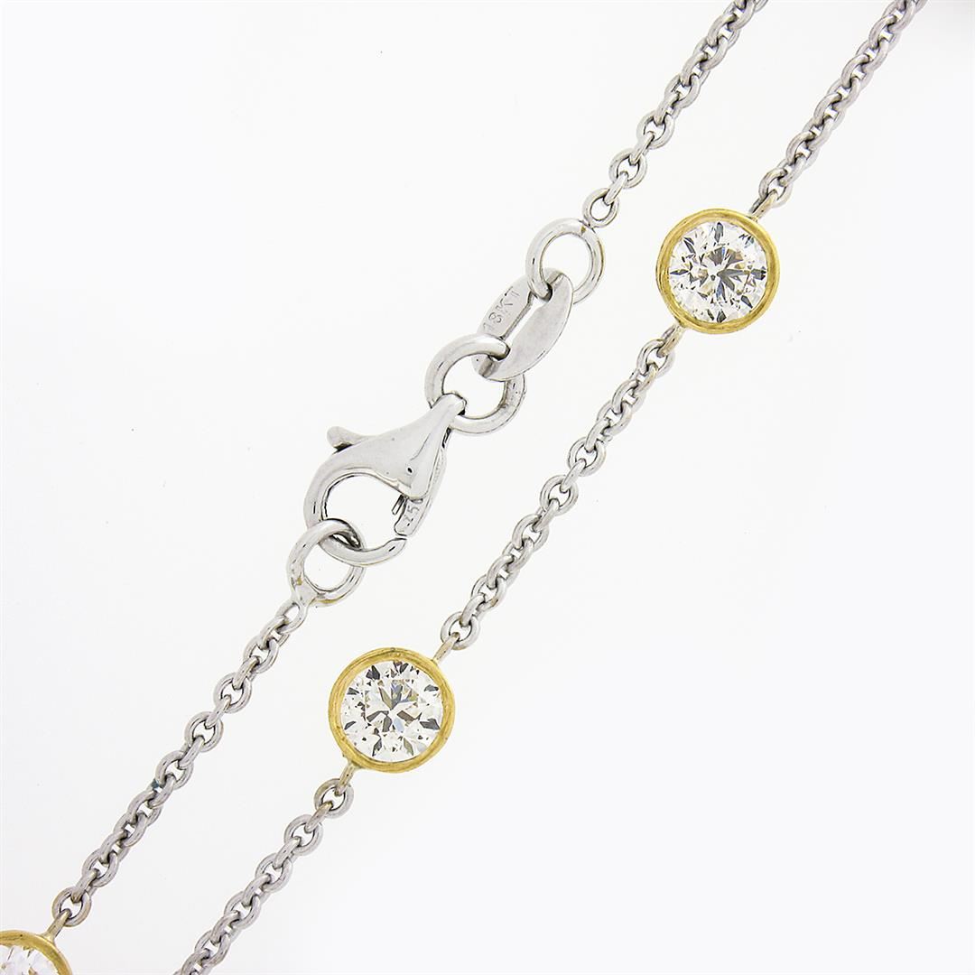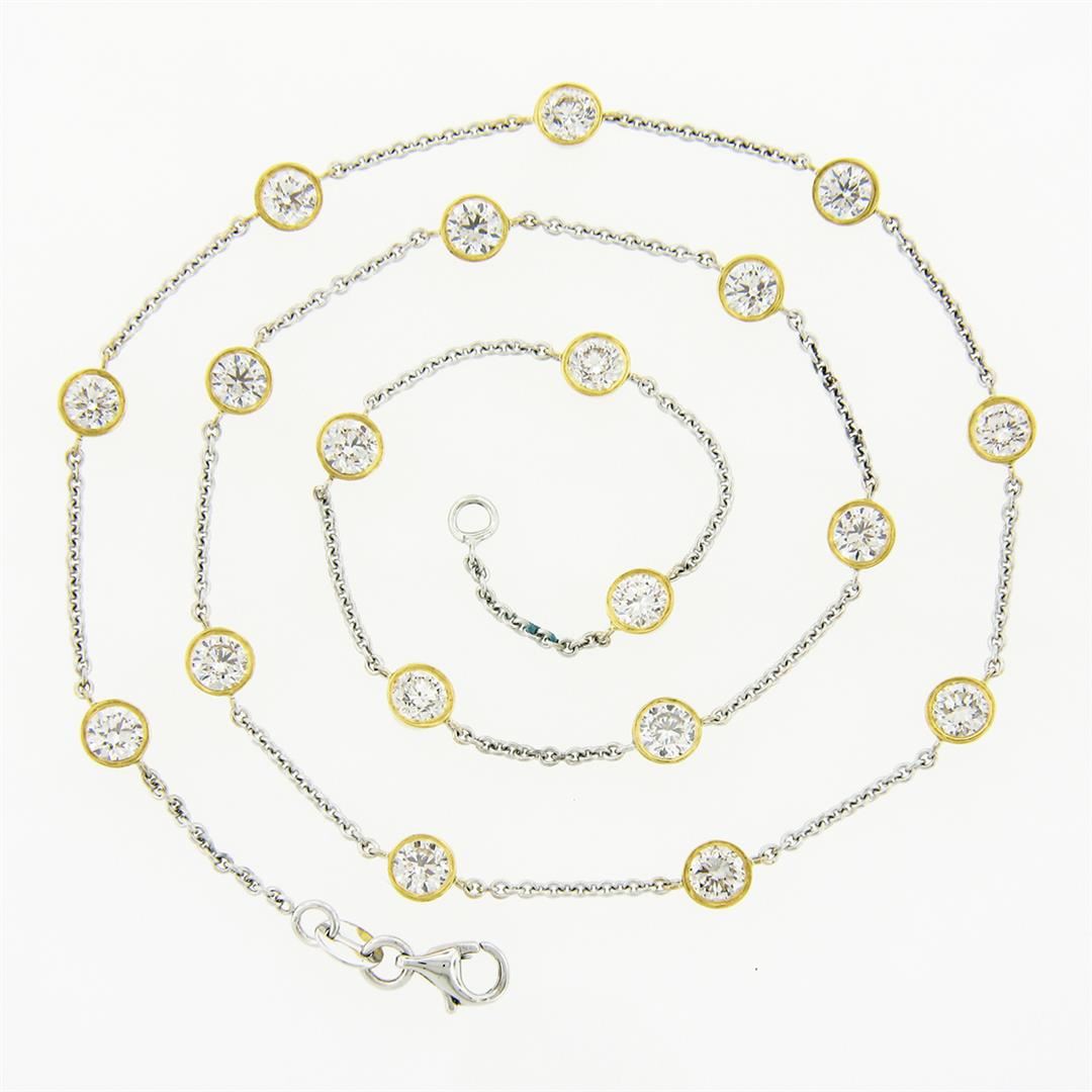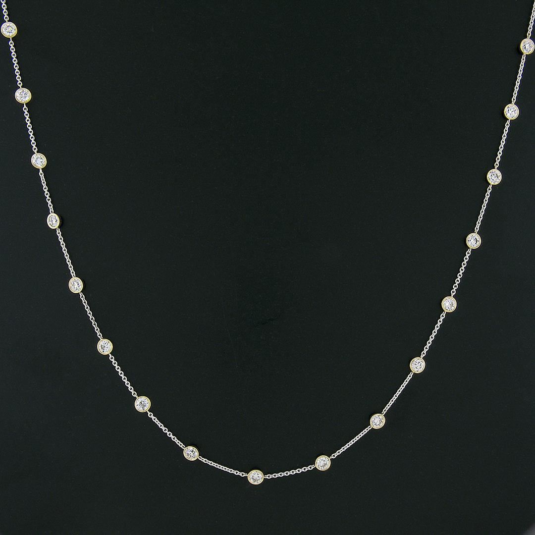 A news solid 18k yellow and white gold by the yard cable chain necklace, with 19 round brilliant cut natural diamonds (G/H - VS1/VS2 ; 4.38ctw). It weighs a total of 6.05 grams, measures 4.65mm wide, and measures 16.5 inches in length.