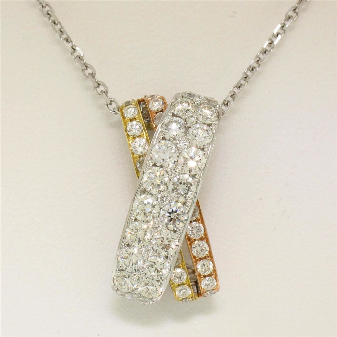 One NEW 18k Tri-Color Gold X Pendant w/ 2.18ctw F VS Pave Round Brilliant Diamonds. Item Details: Material: 18k Solid Gold (Chain is 14k), Weight: 6.3 Grams, Stone(s): (20) Natural Genuine Diamonds - Round Brilliant Cut - Pavé Set - VS2 Clarity - F Color - 2.4mm (avg.), (26) Natural Genuine Diamonds - Round Brilliant Cut - Pavé Set - VS2 Clarity - F Color - 2.0mm (approx.), (9) Natural Genuine Diamonds - Round Brilliant Cut - Pavé Set - VS2 Clarity - F Color - 1.0mm (approx.), Total Carat Weight: 2.18, Chain Type: Diamond Cut Cable Link, Chain Length: 18 Inches Clasp: Lobster Claw Width: 11.02mm Height: 22.51mm Thickness: 8.69mm Condition: New w/o Tag