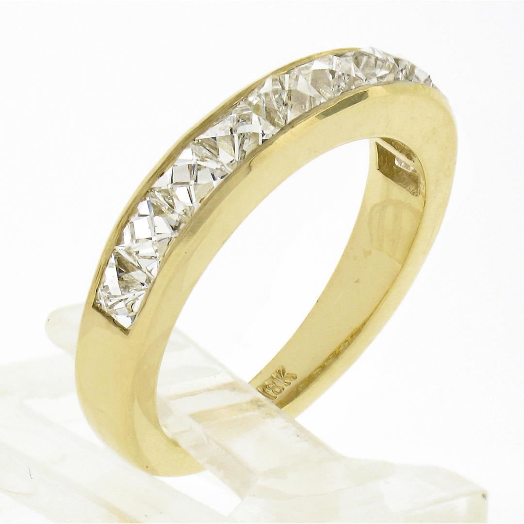 A new solid 18k yellow gold band ring, with 10 French cut natural diamonds (H/I - VVS2/VS1 ; 1.75ctw). The ring is size 5.0, weighs a total of 4.12 grams, and measures 3.60mm wide.