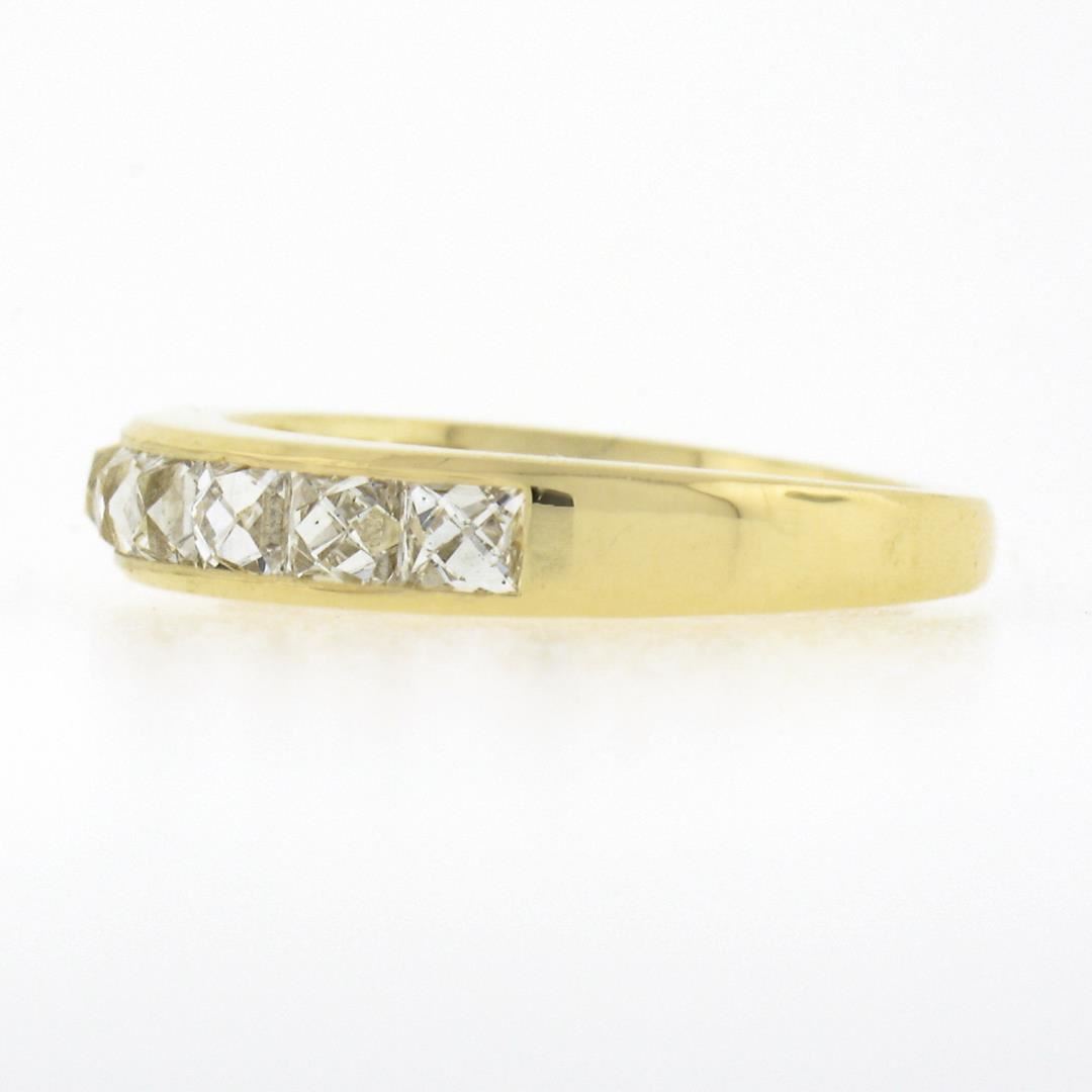 A new solid 18k yellow gold band ring, with 10 French cut natural diamonds (H/I - VVS2/VS1 ; 1.75ctw). The ring is size 5.0, weighs a total of 4.12 grams, and measures 3.60mm wide.
