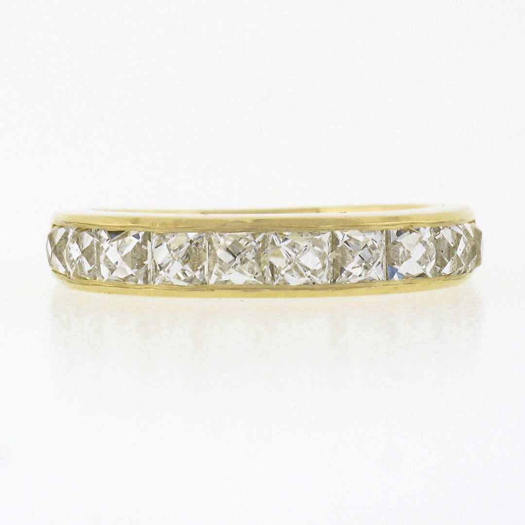 A new solid 18k yellow gold band ring, with 10 French cut natural diamonds (H/I - VVS2/VS1 ; 1.75ctw). The ring is size 5.0, weighs a total of 4.12 grams, and measures 3.60mm wide.