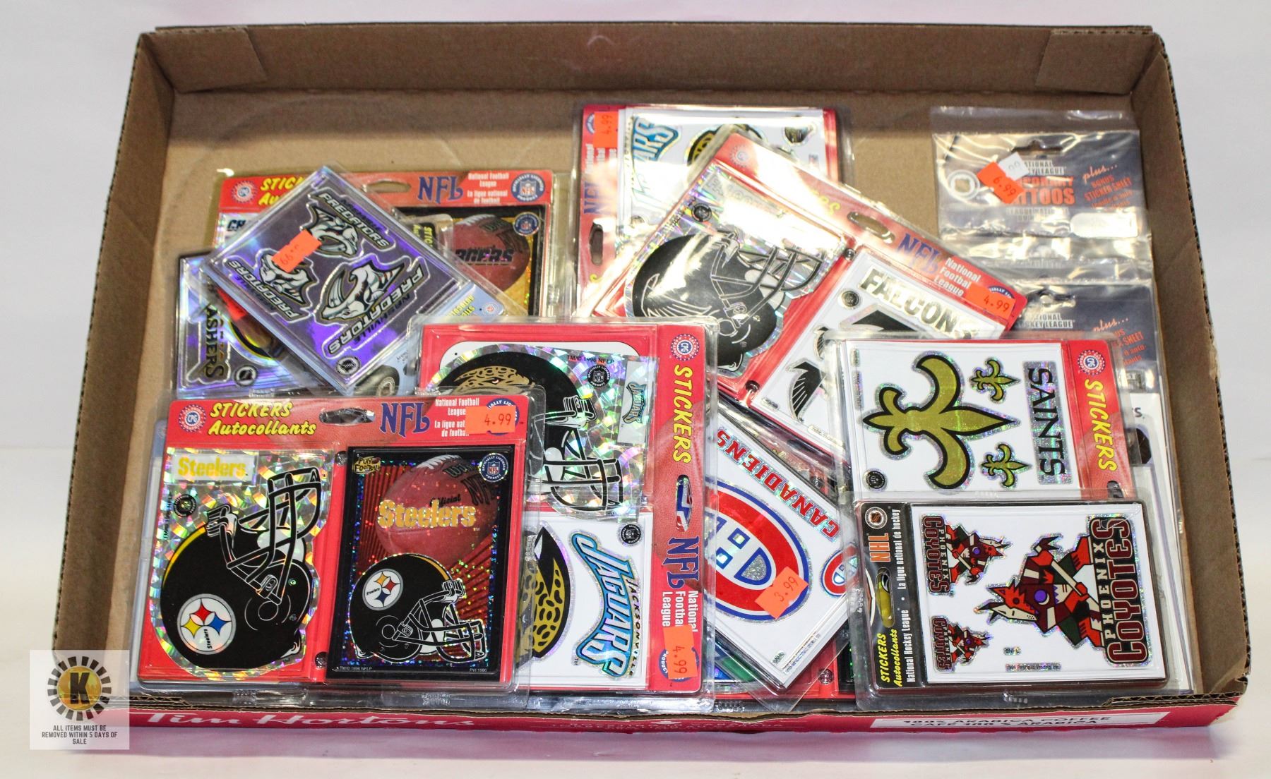 CFL/NHL COLLECTIBLE TEAM STICKERS & TEMP TATTOO'S **ALL ITEMS MUST BE REMOVED BY 5PM SATURDAY, MARCH 22ND 2025. ALL REMAINING ITEMS WILL BE SUBJECT TO A $6.00 PER DAY STORAGE CHARGE. ANY ITEMS REMAINING AFTER MONDAY, APRIL 7TH 2025 WILL BE CONSIDERED FORFEITED. NO REFUNDS WILL BE ISSUED FOR FORFEITED ITEMS. TO SCHEDULE A PICK UP APPOINTMENT CLICK HERE