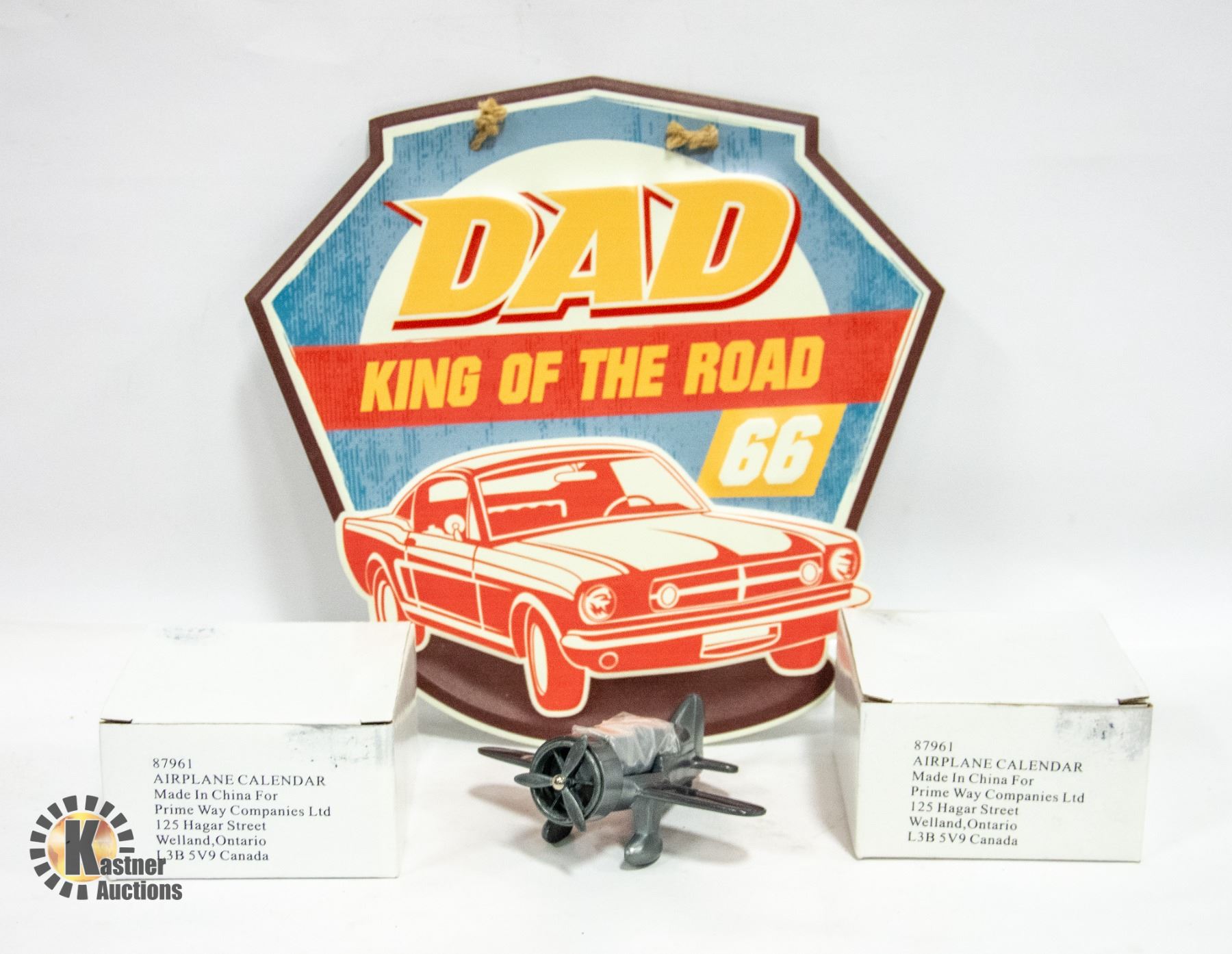 CALENDAR & NEW DAD RETRO SIGN KING OF THE ROAD 66 **ALL ITEMS MUST BE REMOVED BY 5PM SATURDAY, JUNE 17TH 2023. ALL REMAINING ITEMS WILL BE SUBJECT TO A $6.00 PER DAY STORAGE CHARGE. ANY ITEMS REMAINING AFTER MONDAY, JULY 3RD, 2023 WILL BE CONSIDERED FORFEITED. NO REFUNDS WILL BE ISSUED FOR FORFEITED ITEMS. TO SCHEDULE A PICK UP APPOINTMENT CLICK HERE