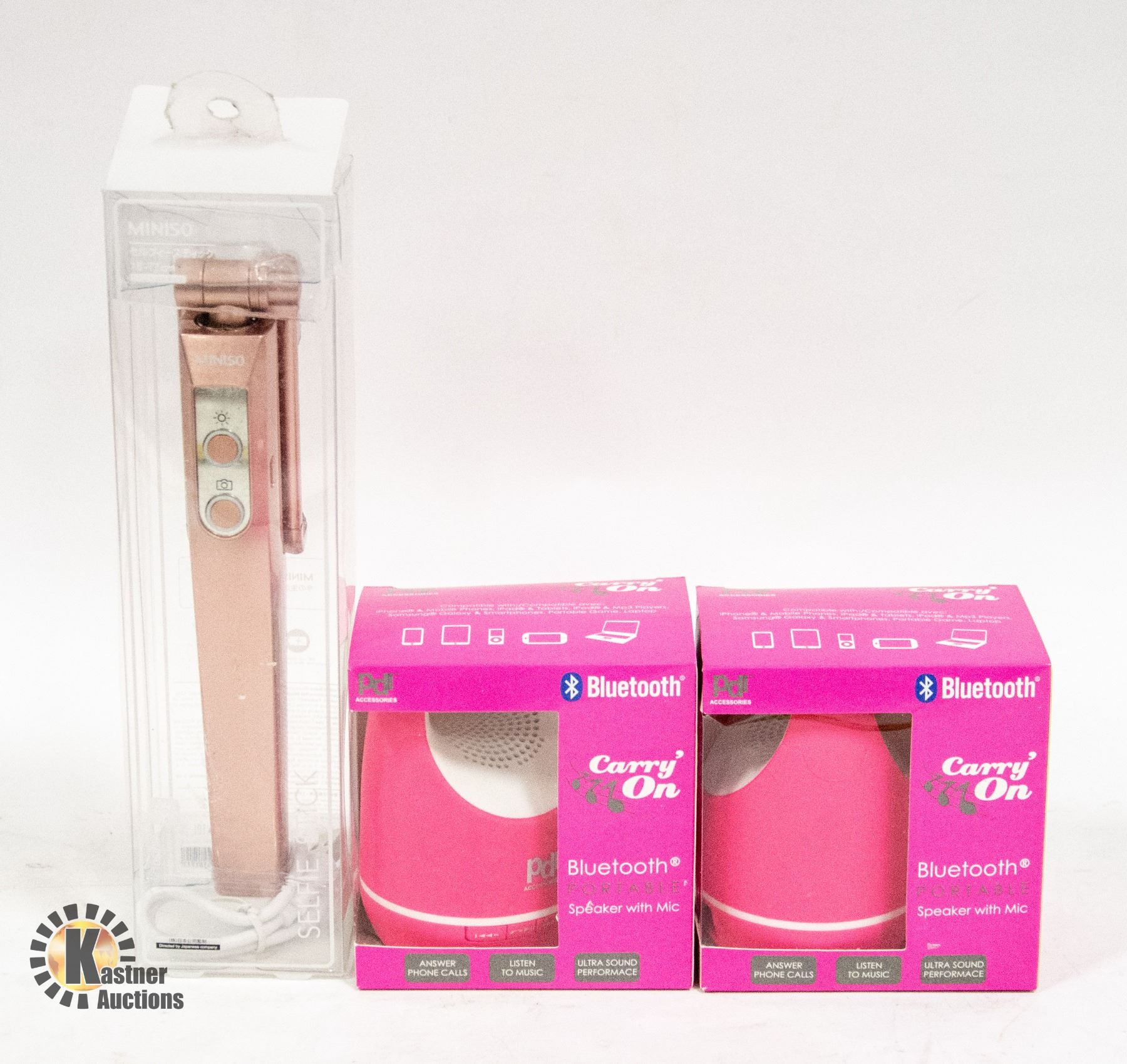 SPEAKER & MIC (PINK) & NEW MINISO SELFIE STICK **ALL ITEMS MUST BE REMOVED BY 5PM SATURDAY, MAY 13TH 2023. ALL REMAINING ITEMS WILL BE SUBJECT TO A $6.00 PER DAY STORAGE CHARGE. ANY ITEMS REMAINING AFTER MONDAY, MAY 29TH, 2023 WILL BE CONSIDERED FORFEITED. NO REFUNDS WILL BE ISSUED FOR FORFEITED ITEMS. TO SCHEDULE A PICK UP APPOINTMENT CLICK HERE