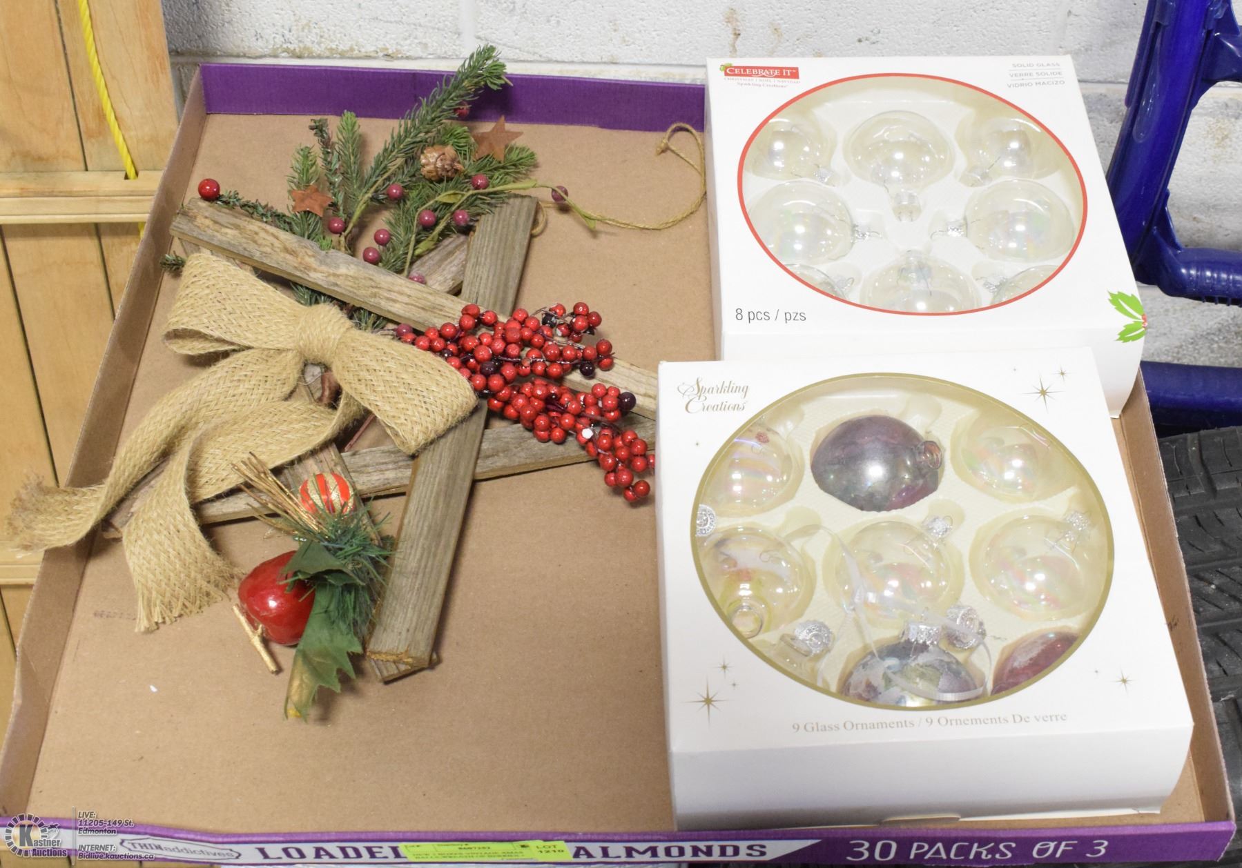 NEW 2 BOXES VINTAGE XMAS BALLS,WREATH OF BERRIES +