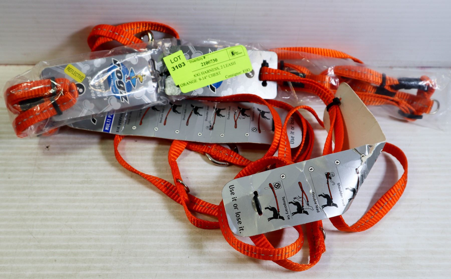 NEW 2 DOG HARNESS, 2 LEASH ORANGE 9-14" CHEST
