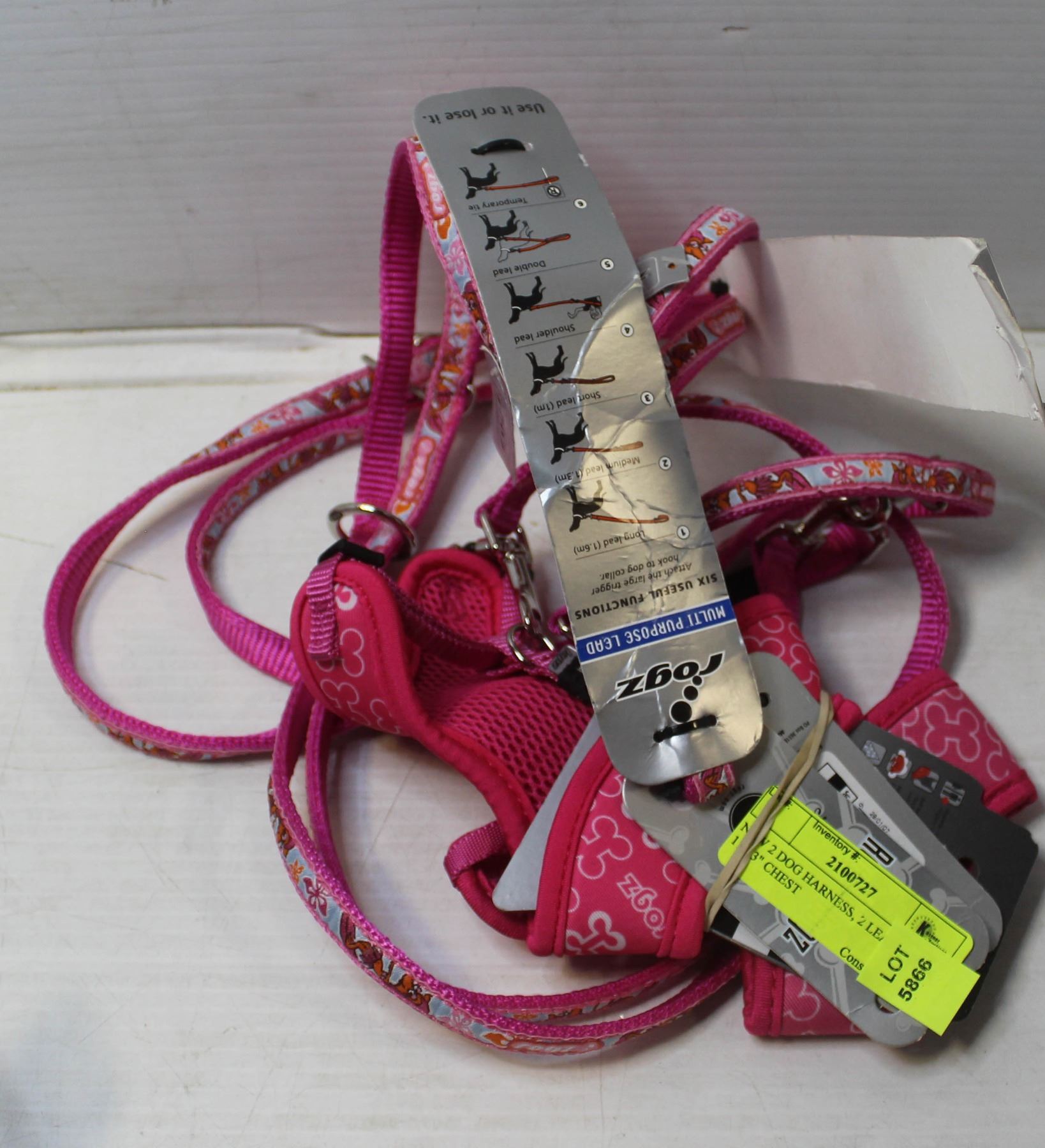 NEW 2 DOG HARNESS, 2 LEASH PINK 11-13" CHEST