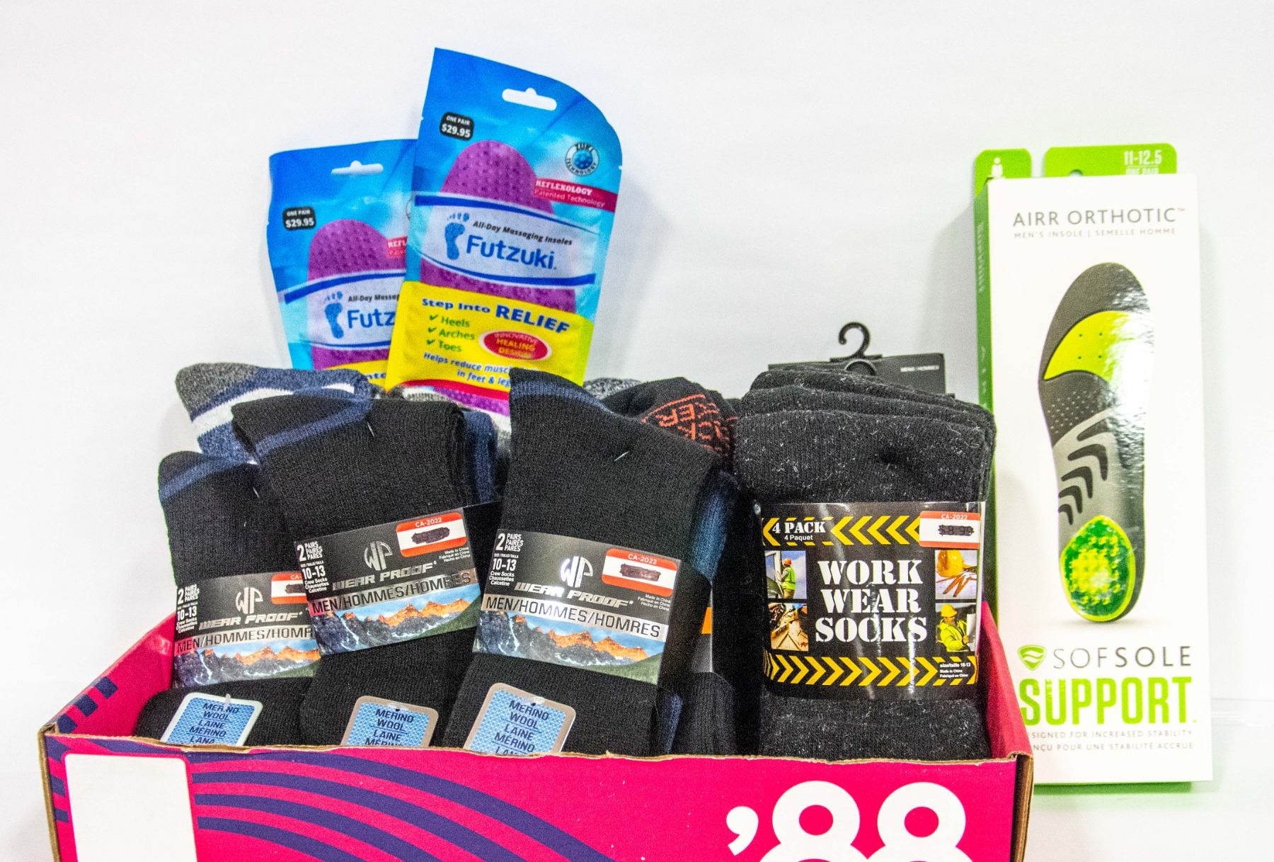 INSOLES MEM/WOMEN (TRIM TO FIT) W/NEW AIRR ORTHOTIC MENS INSOLES 11-12.5 W/NEW 25 PAIR MENS SOCKS (6) MERINO WOOL, BLACK & DECKER, BOOT SOCKS SIZE 10-13 **ALL ITEMS MUST BE REMOVED BY 5PM SATURDAY, DECEMBER 17TH, 2022. ALL REMAINING ITEMS WILL BE SUBJECT TO A $6.00 PER DAY STORAGE CHARGE. ANY ITEMS REMAINING AFTER MONDAY, JANUARY 2ND, 2023 WILL BE CONSIDERED FORFEITED. NO REFUNDS WILL BE ISSUED FOR FORFEITED ITEMS. TO SCHEDULE A PICK UP APPOINTMENT CLICK HERE