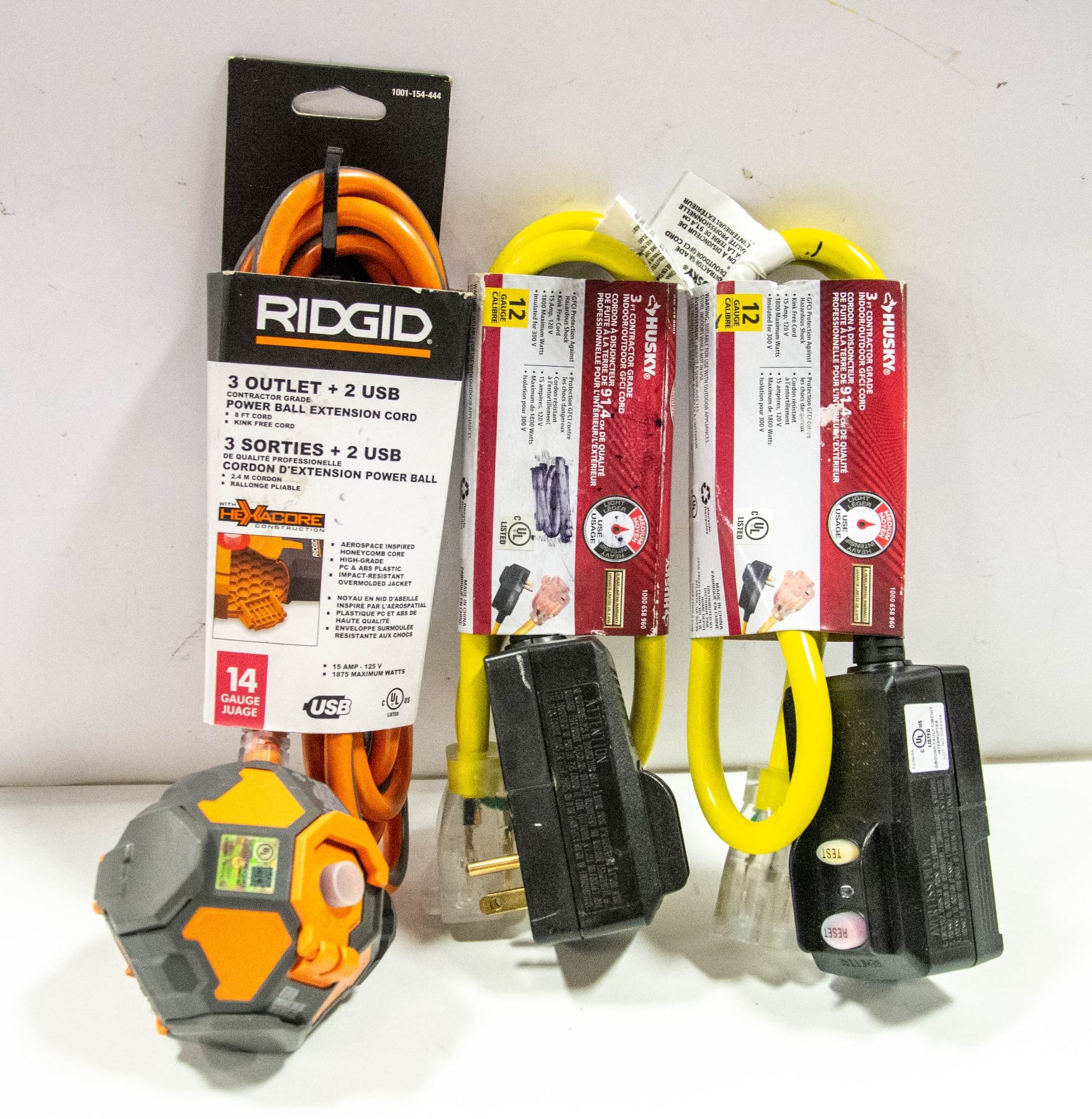 PORTABLE INDOOR/OUTDOOR GFCI EXTENSION CORD W/NEW RIDGID 3-OUTLET POWER BALL EXTENSION CORD PLUS USB 14 GAUGE **ALL ITEMS MUST BE REMOVED BY 5PM SATURDAY, DECEMBER 3RD, 2022. ALL REMAINING ITEMS WILL BE SUBJECT TO A $6.00 PER DAY STORAGE CHARGE. ANY ITEMS REMAINING AFTER MONDAY, DECEMBER 18TH, 2022 WILL BE CONSIDERED FORFEITED. NO REFUNDS WILL BE ISSUED FOR FORFEITED ITEMS. TO SCHEDULE A PICK UP APPOINTMENT CLICK HERE