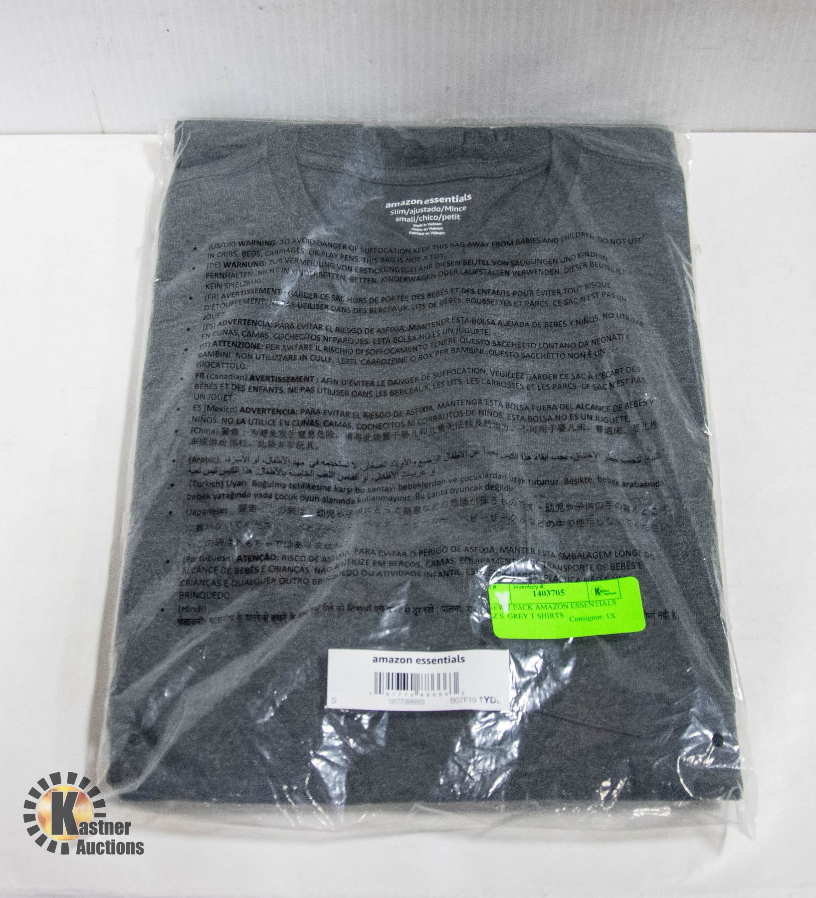 NEW 2 PACK AMAZON ESSENTIALS SZ S GREY T SHIRTS