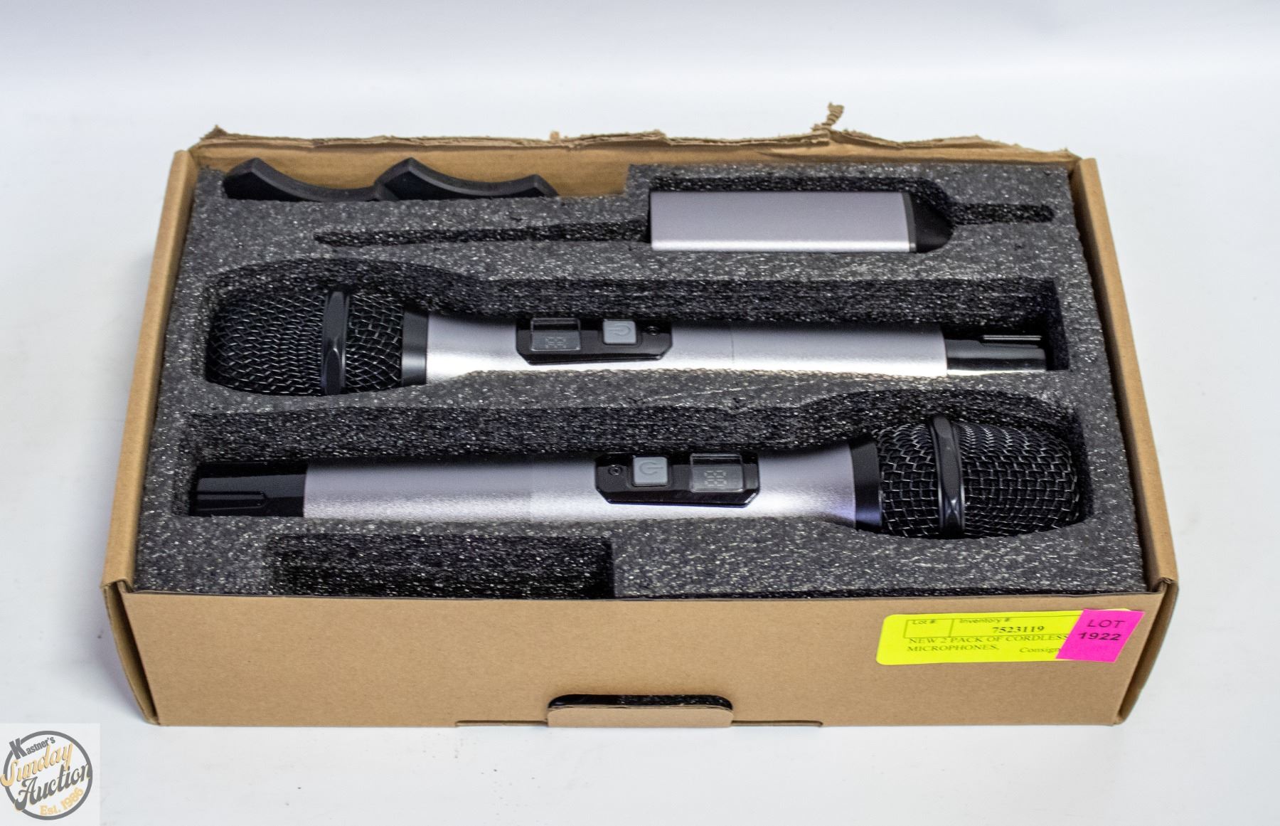 NEW 2 PACK OF CORDLESS MICROPHONES,