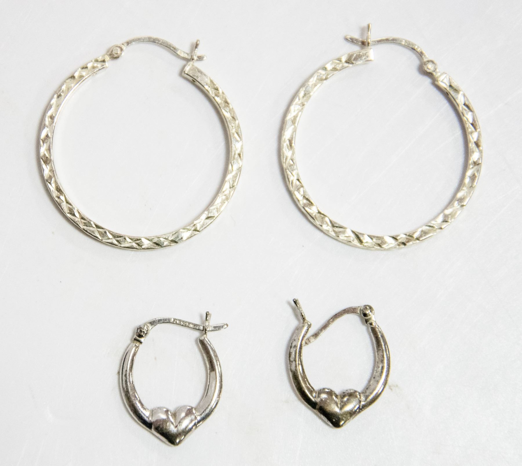 NEW 2 PAIR OF .925 SILVER HOOP EARRINGS