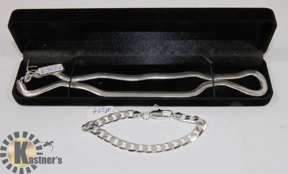 NEW 2 PC SILVER PLATED NECKLACE 18  W/ BRACELET 8