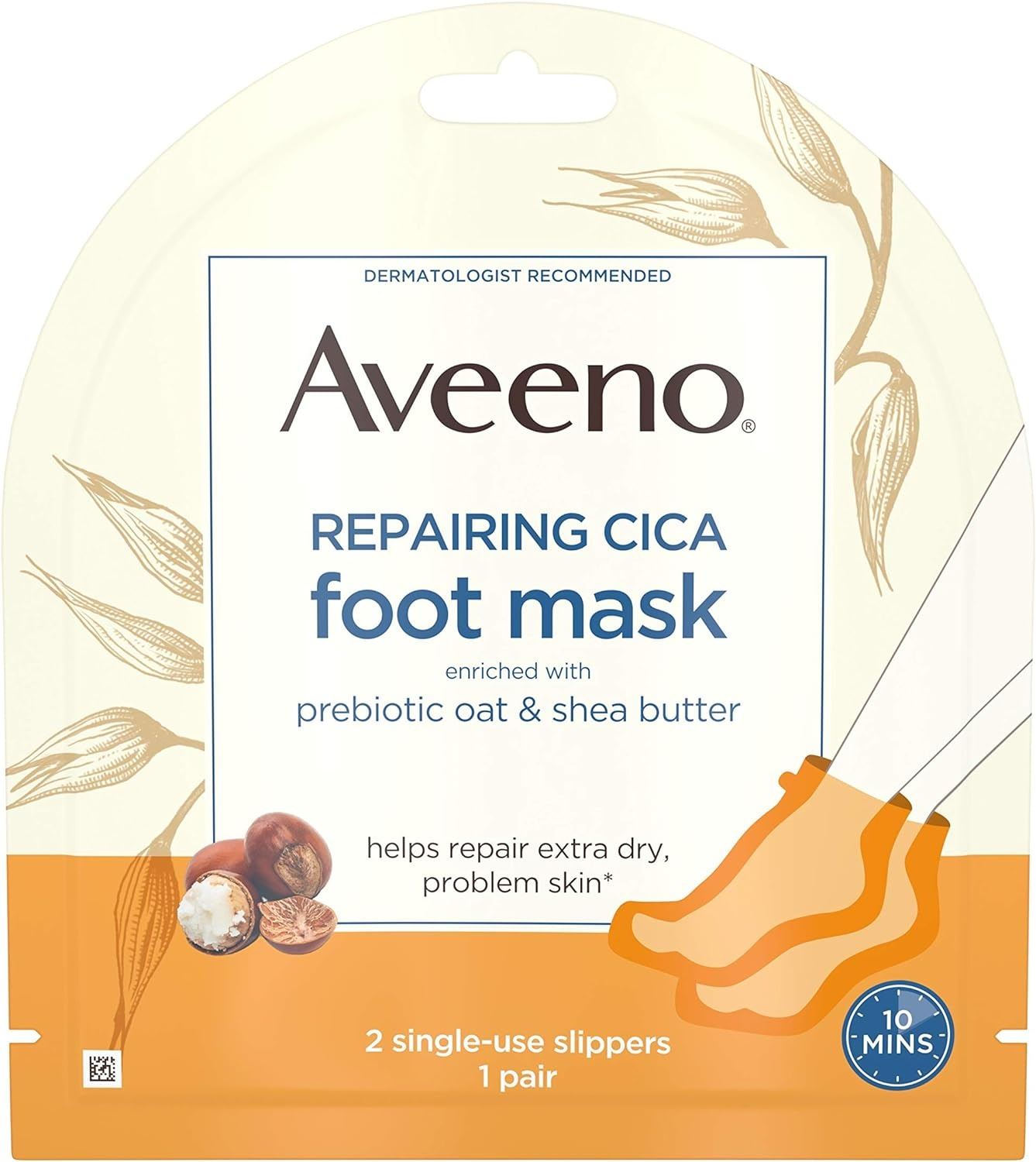 FOOT MASKS WITH PREBIOTIC OAT AND SHEA BUTTER, DRY SKIN MOISTURIZER, 4 TOTAL SINGLE USE SLIPPERS, AMZ SES