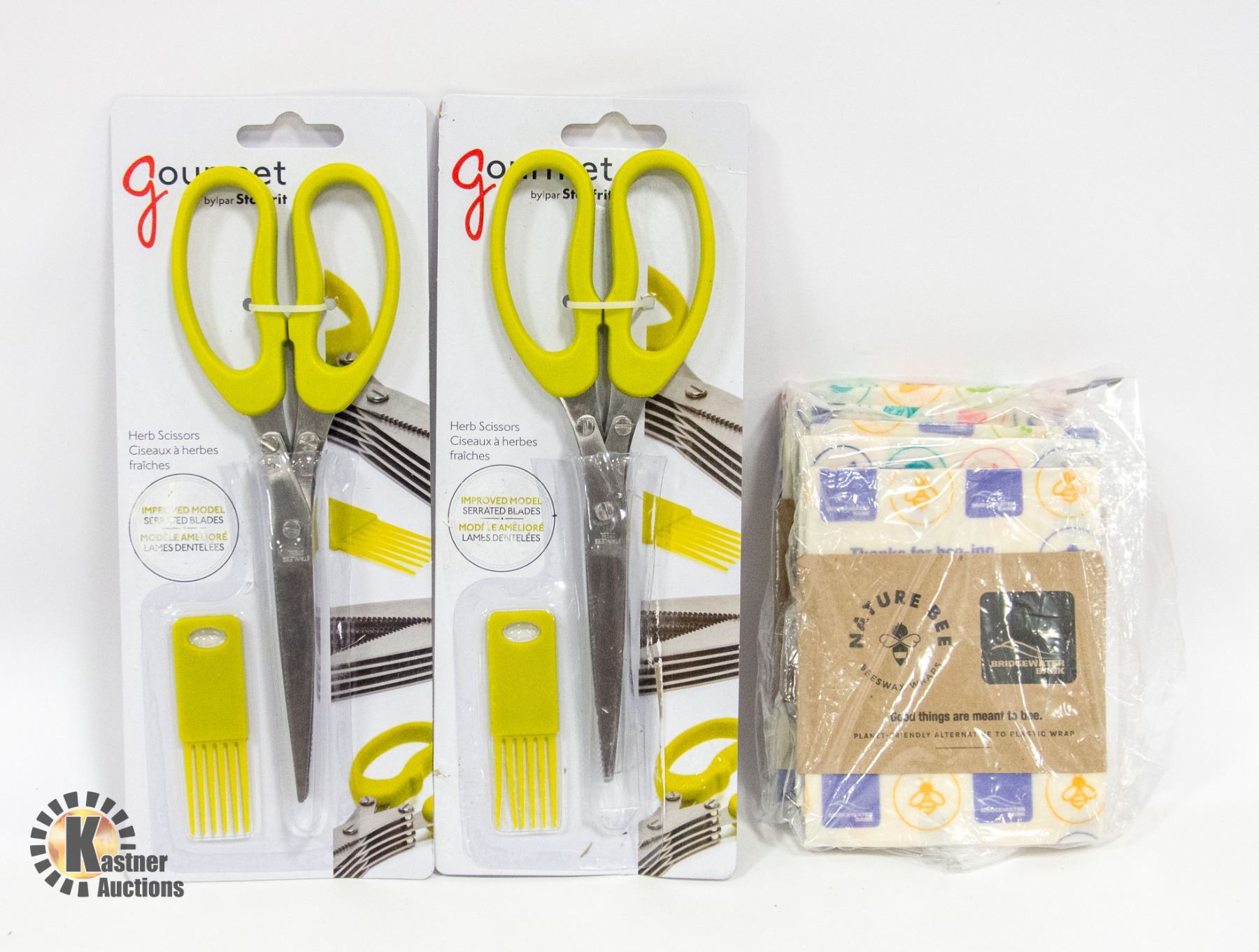 SCISSORS W/NEW (6) NATURE BEE BEESWAX WRAPS **ALL ITEMS MUST BE REMOVED BY 5PM SATURDAY, AUGUST 26TH 2023. ALL REMAINING ITEMS WILL BE SUBJECT TO A $6.00 PER DAY STORAGE CHARGE. ANY ITEMS REMAINING AFTER MONDAY, SEPTEMBER 11TH, 2023 WILL BE CONSIDERED FORFEITED. NO REFUNDS WILL BE ISSUED FOR FORFEITED ITEMS. TO SCHEDULE A PICK UP APPOINTMENT CLICK HERE
