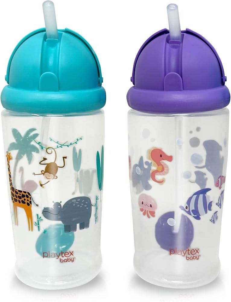 NEW 2 X 355ML PLAYTEX SIPSTERS FLIP-TOP STRAW CUP