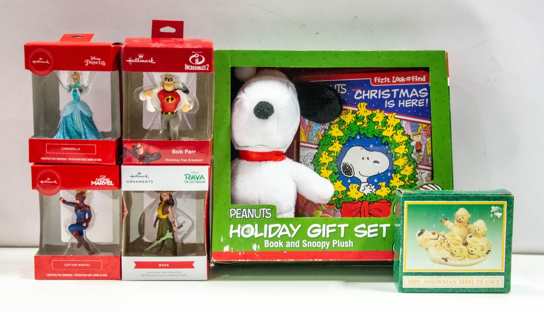 BOOK & SNOOPY PLUSH W/NEW 4 HALLMARK TREE ORNAMENTS & VINTAGE (NEW) WORLD BAZZAAR INC. 10 PC MINI SNOWMAN TEA SET (DECORATIVE ONLY) **ALL ITEMS MUST BE REMOVED BY 5PM SATURDAY, DECEMBER 3RD, 2022. ALL REMAINING ITEMS WILL BE SUBJECT TO A $6.00 PER DAY STORAGE CHARGE. ANY ITEMS REMAINING AFTER MONDAY, DECEMBER 18TH, 2022 WILL BE CONSIDERED FORFEITED. NO REFUNDS WILL BE ISSUED FOR FORFEITED ITEMS. TO SCHEDULE A PICK UP APPOINTMENT CLICK HERE