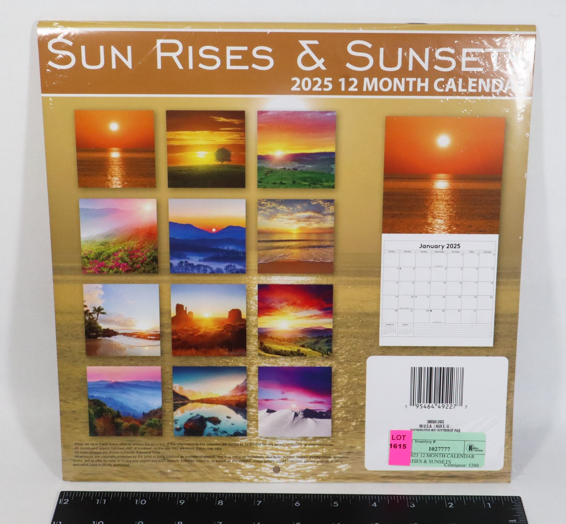 NEW 2025 12 MONTH CALENDAR -SUN RISES & SUNSETS