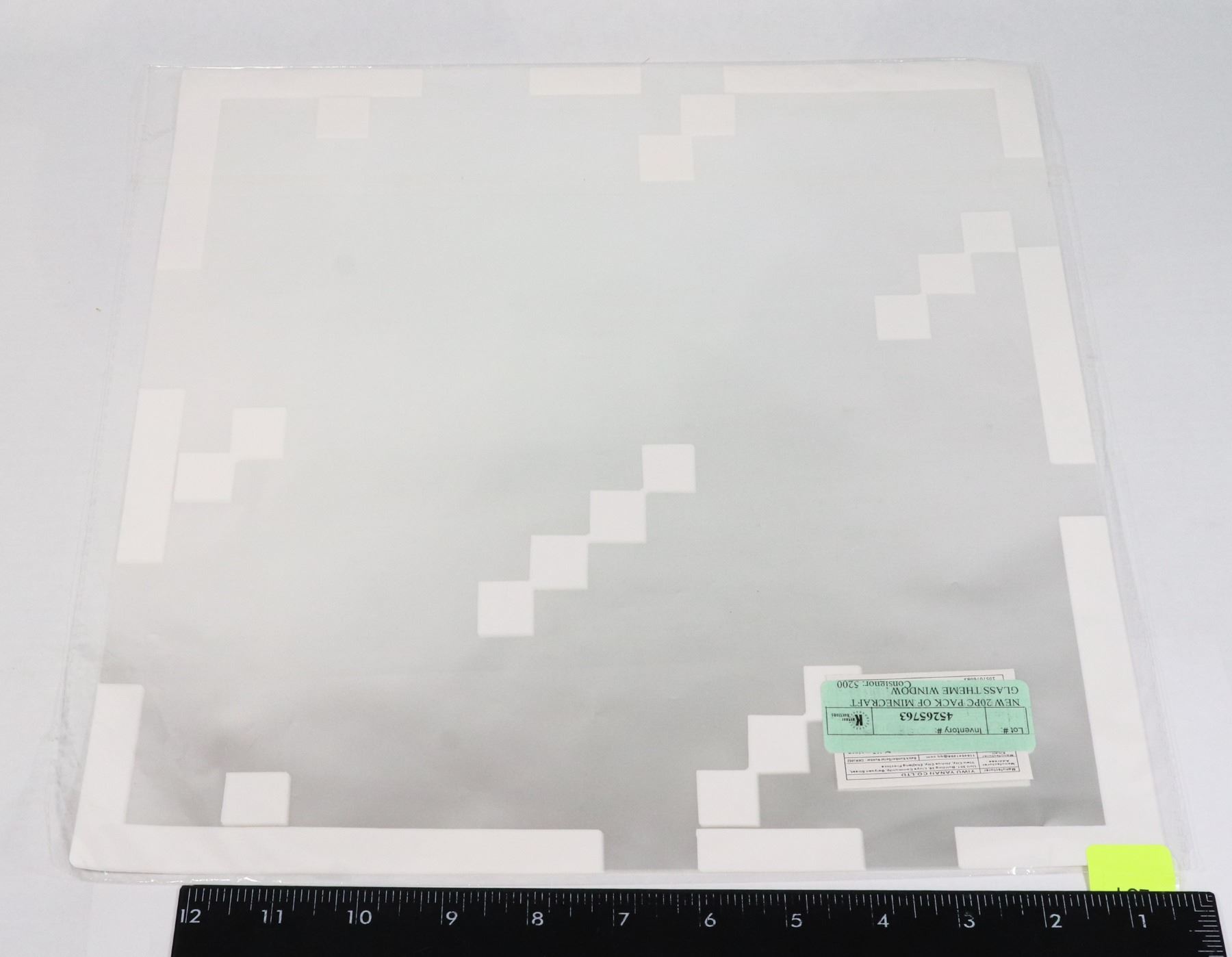 STATIC CLING SQUARES. APPROX 13" X 13" EACH. STATIC CLING TO A WINDOW TO MAKE IT LOOK LIKE MINECRAFT GLASS
