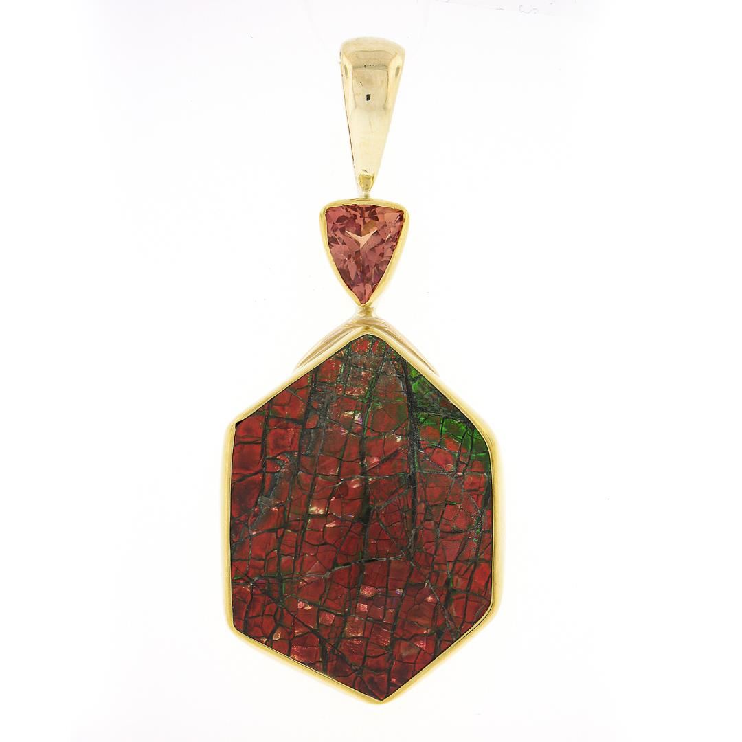 NEW 22k 14k Gold Bezel Hexagon Ammolite & Triangle Imperial Topaz Large Pendant
