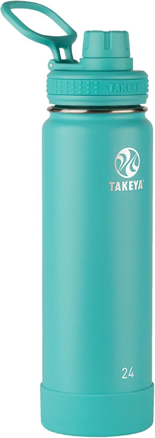 TAKEYA ACTIVES INSULATED STAINLESS STEEL WATER BOTTLE WITH SPOUT LID, 0.7 LITER / 24 OUNCE, TEAL. AMZ SES