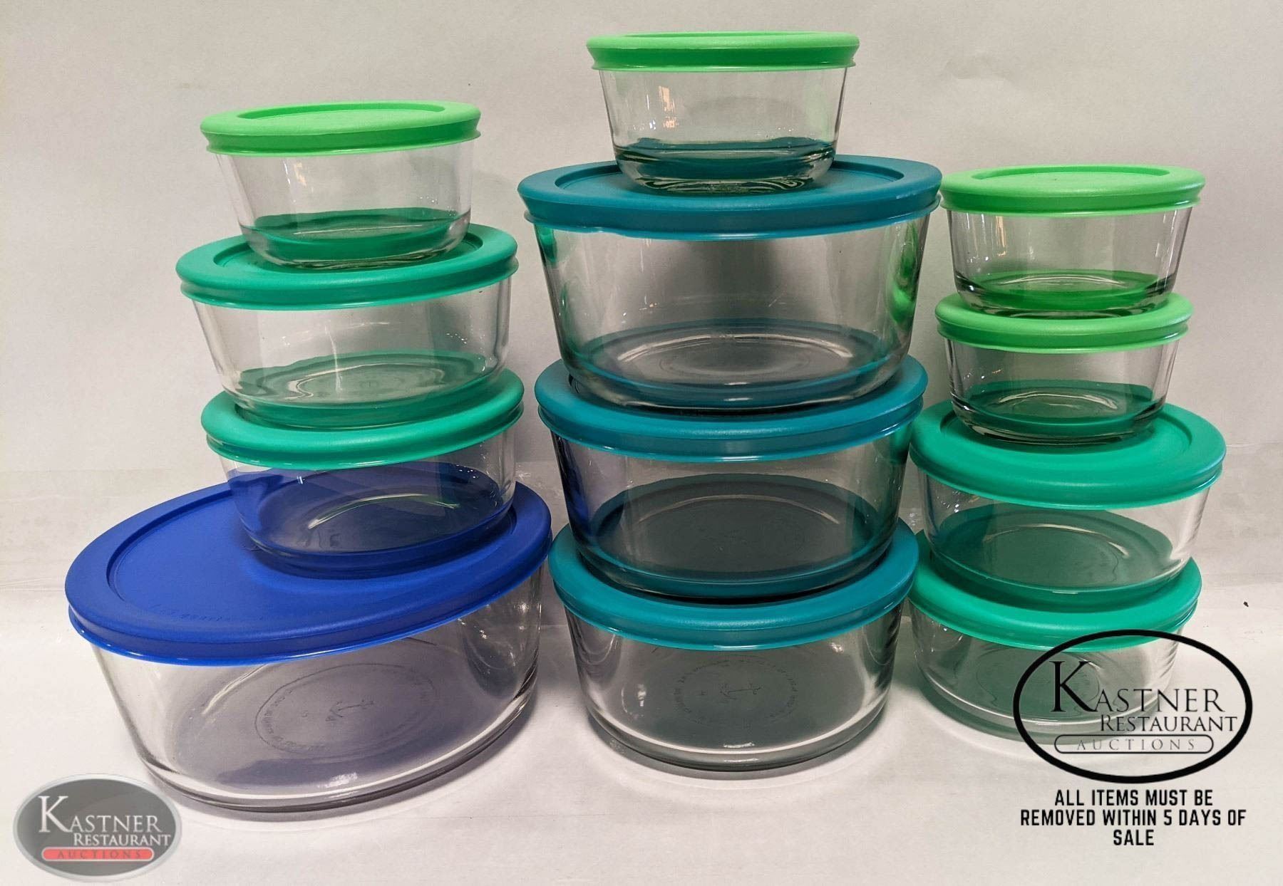 TEMPERED GLASS W/ SNUGFIT LIDS. NESTING FOR EASY STORAGE, OVEN SAFE TO 425 FAHRENHEIT (218 CELCIUS), MICROWAVE SAFE, FREEZER SAFE, DISHWASHER SAFE. INCL: 4 - 1 CUP (236ML), 4 - 2 CUP (476ML), 3 - 4 CUP (946ML), & 1 - 7 CUP (1.7L). MADE IN USA **ALL ITEMS MUST BE REMOVED BY 5PM MONDAY, SEPTEMBER 12TH, 2022. ALL REMAINING ITEMS WILL BE SUBJECT TO A $6.00 PER DAY STORAGE CHARGE. ANY ITEMS REMAINING AFTER MONDAY, SEPTEMBER 26TH, 2022 WILL BE CONSIDERED FORFEITED. NO REFUNDS WILL BE ISSUED FOR FORFEITED ITEMS.** TO SCHEDULE A PICK UP APPOINTMENT CLICK HERE