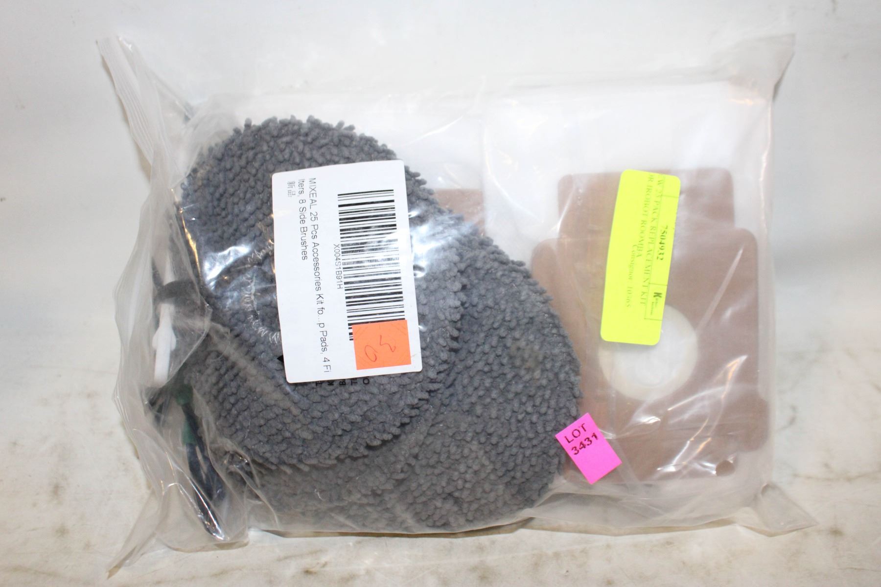 NEW 25 PACK REPLACEMENT KIT FOR IROBOT ROOMBA PLUS 405 COMBO, PLUS 505 COMBO VACUUM 25 PACK REPLACEMENT ACCESSORIES KIT FOR IROBOT ROOMBA PLUS 405 COMBO, PLUS 505 COMBO VACUUM, 2 MAIN BRUSHES,4 FILTERS,6 DUST BAGS,6 MOP PADS,6 SIDE BRUSHES,1 CLEANING