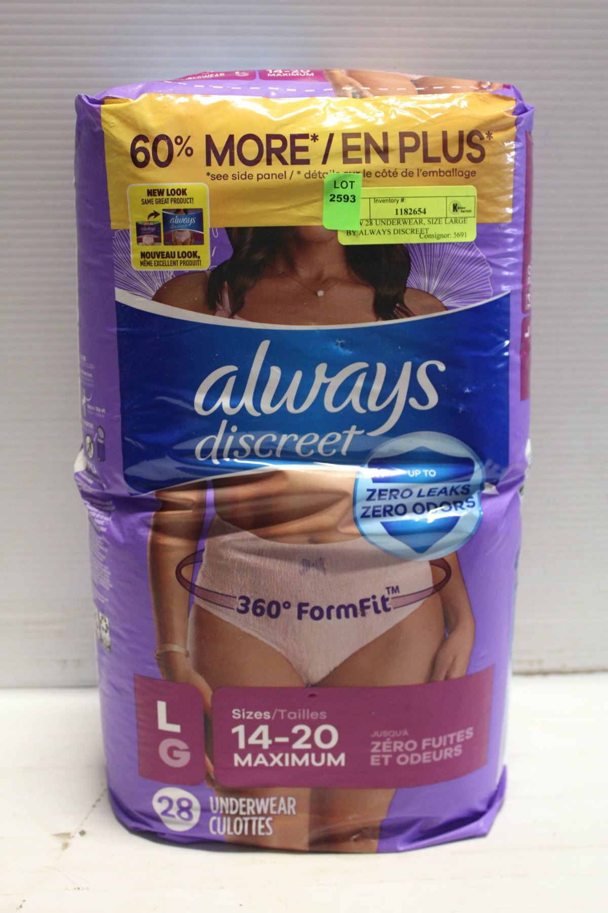 NEW 28 UNDERWEAR, SIZE LARGE BY ALWAYS DISCREET