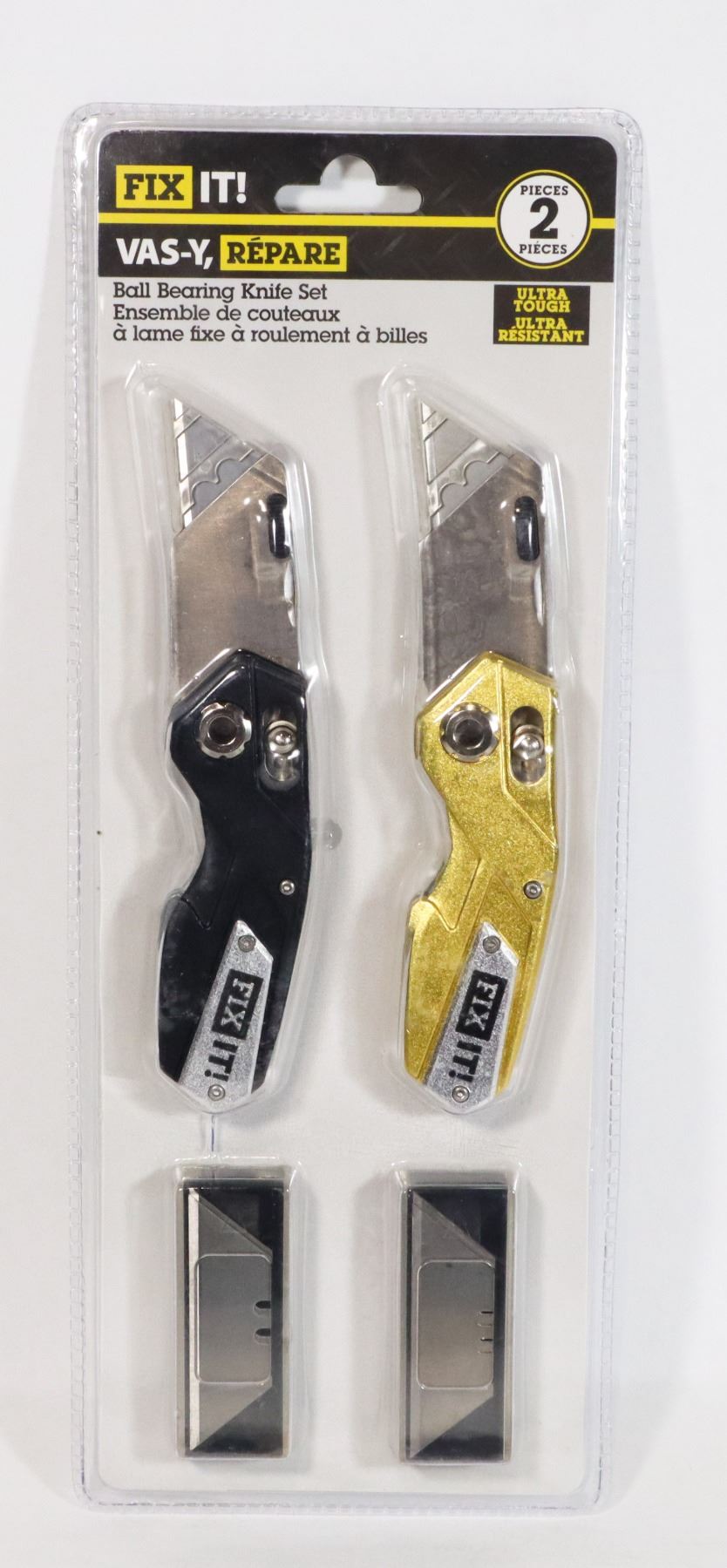 INCLUDES SPARE BLADES. FOLDS AND LOCKS CLOSED. ALUMINUM BODY