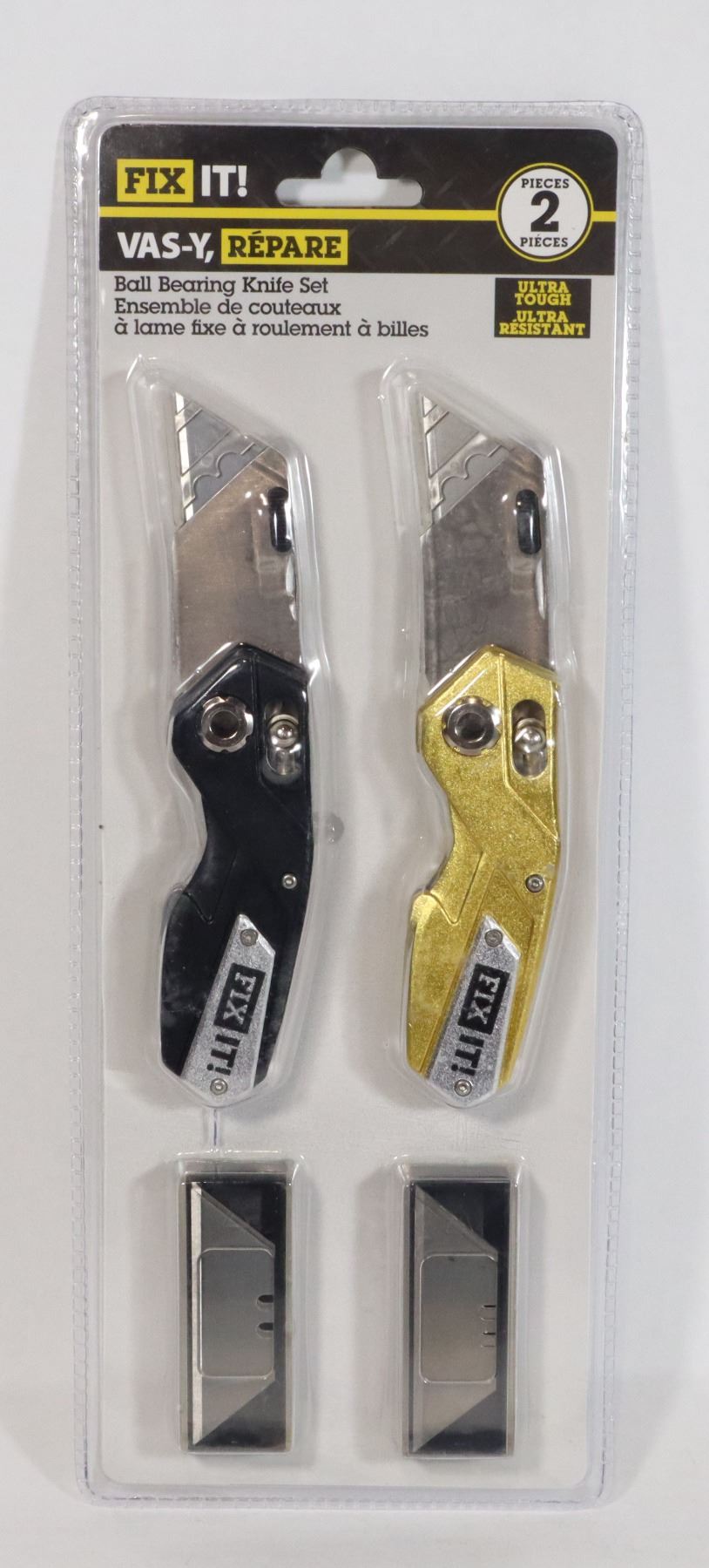 INCLUDES SPARE BLADES. FOLDS AND LOCKS CLOSED. ALUMINUM BODY