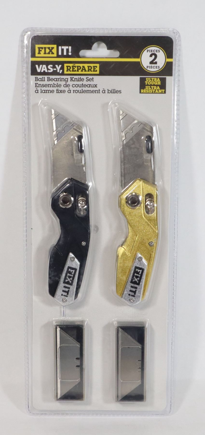 INCLUDES SPARE BLADES. FOLDS AND LOCKS CLOSED. ALUMINUM BODY