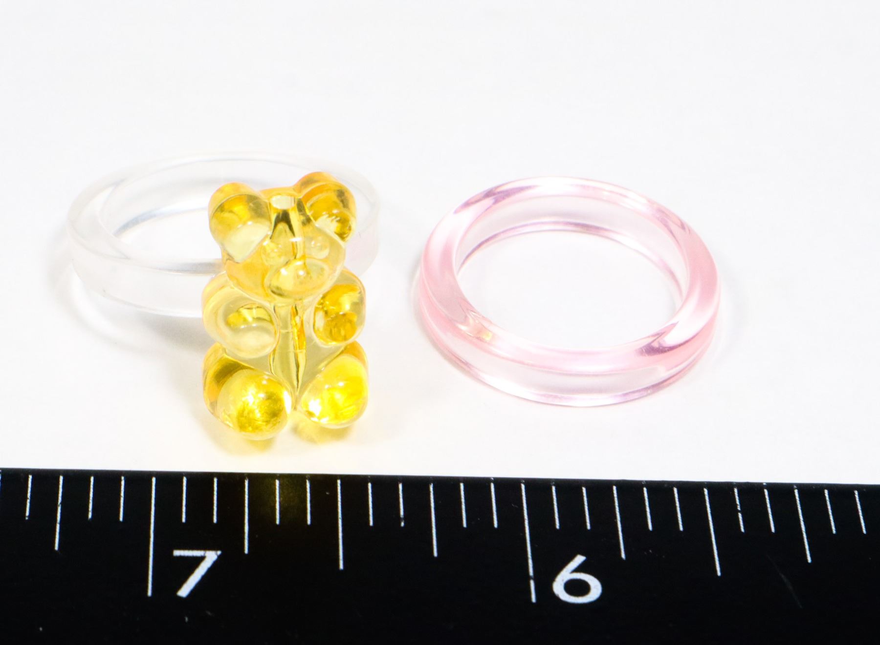 RING AND 1 RESIN RING SIZE 7 TIN BAND, 7 1/2 BEAR FASHION JEWELRY
