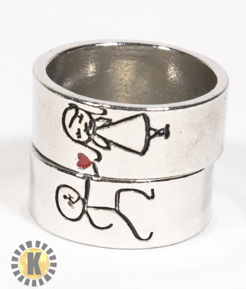 PERSON OFFERING THEIR HEART TO OTHER STICK PERSON. FASHION JEWELRY