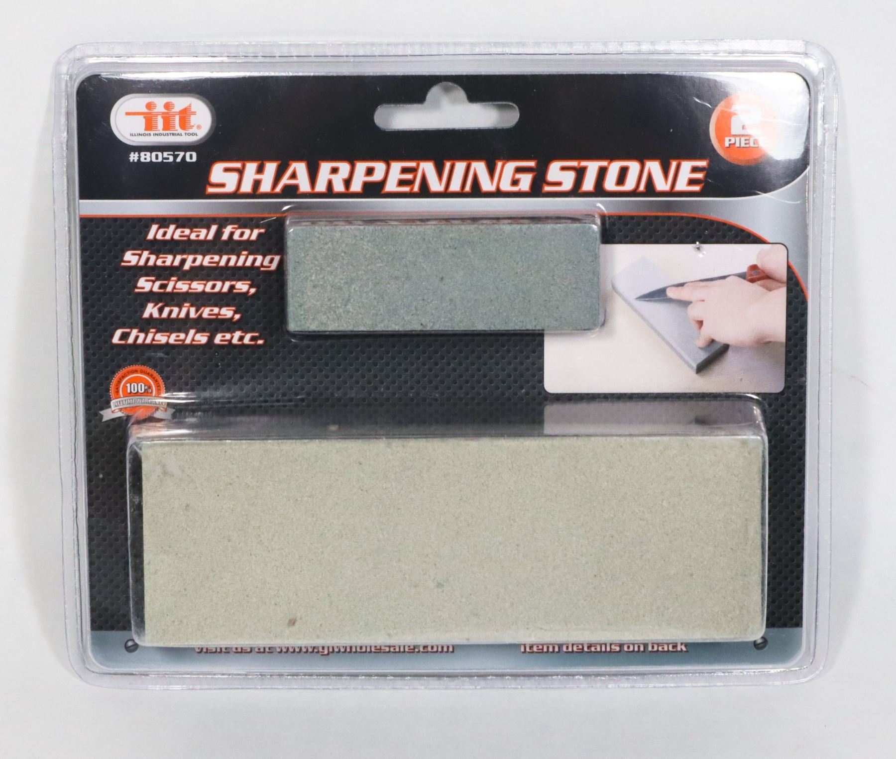 LARGE STONE IS 120 GRIT ONE SIDE AND 240 GRIT ON THE OTHER SIDE. SMALLER STONE IS 120 GRIT