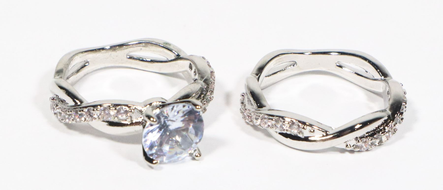 NEW 2PC SILVER TONE, RHINESTONE ROPE DESIGN RINGS