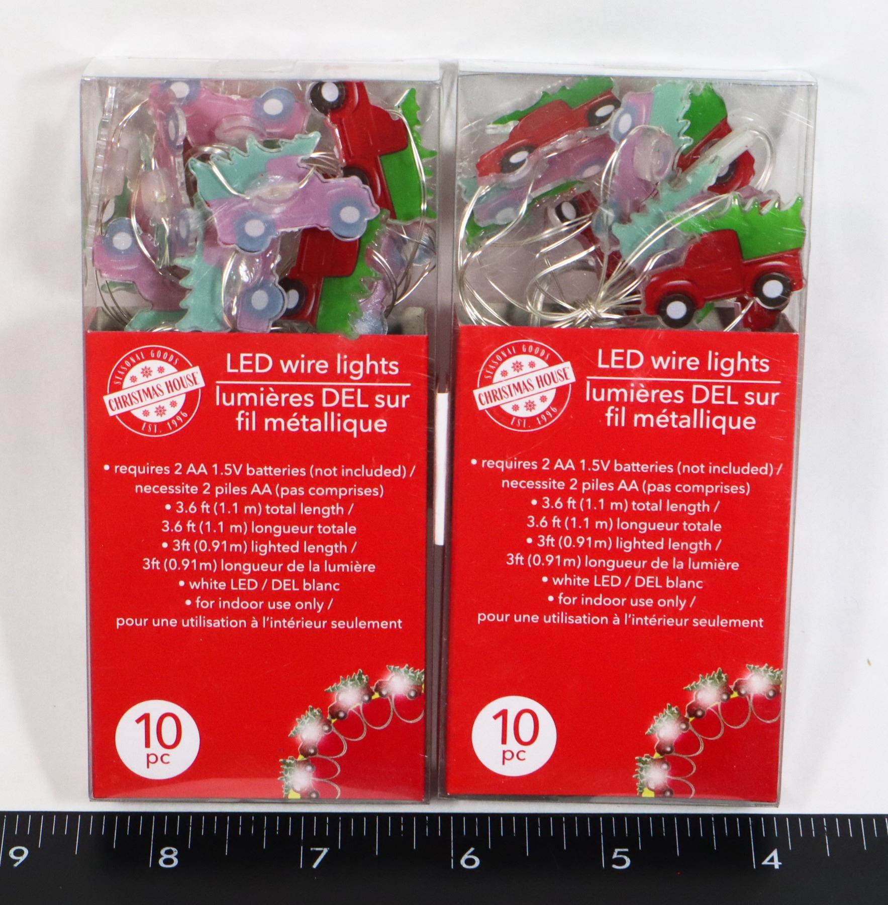 TREES DESIGN REQUIRES 2AA BATTERIES (NOT INCLUDED) IN EACH LIGHT SET. 10 LIGHTS ON A STRING, STRINGS ARE 3.6 FT LONG.