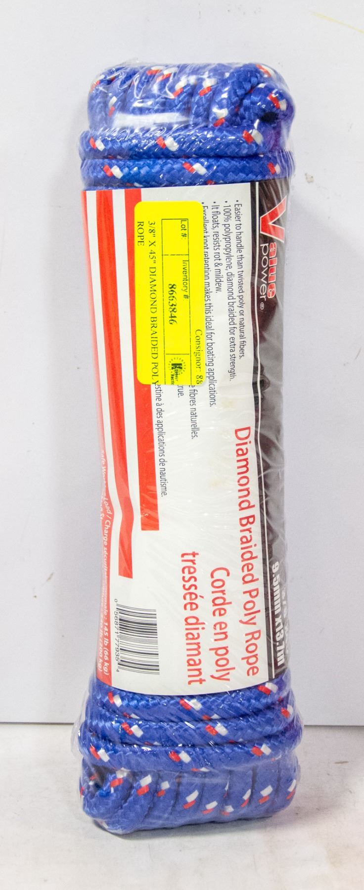 NEW 3/8" X 45" DIAMOND BRAIDED POLY ROPE