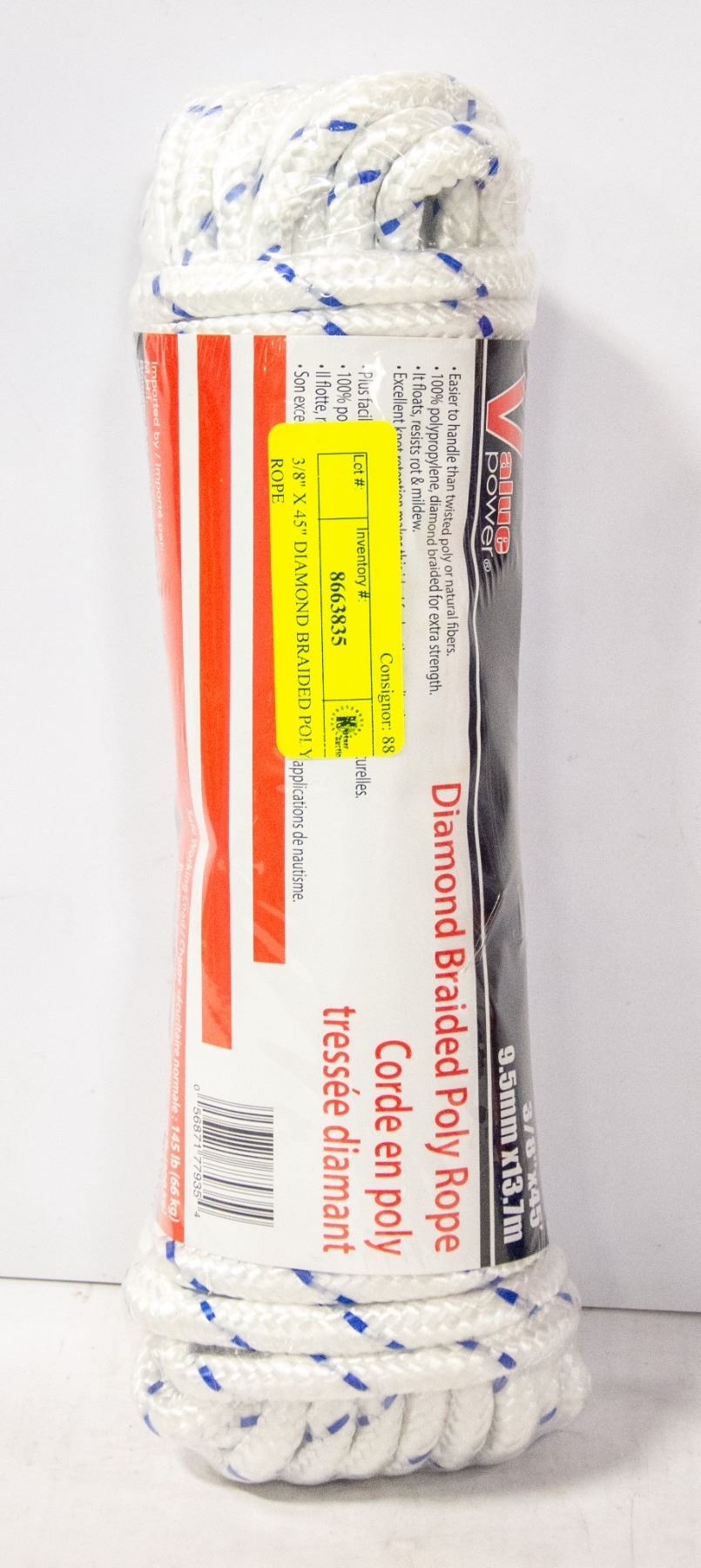 NEW 3/8  X 45  DIAMOND BRAIDED POLY ROPE