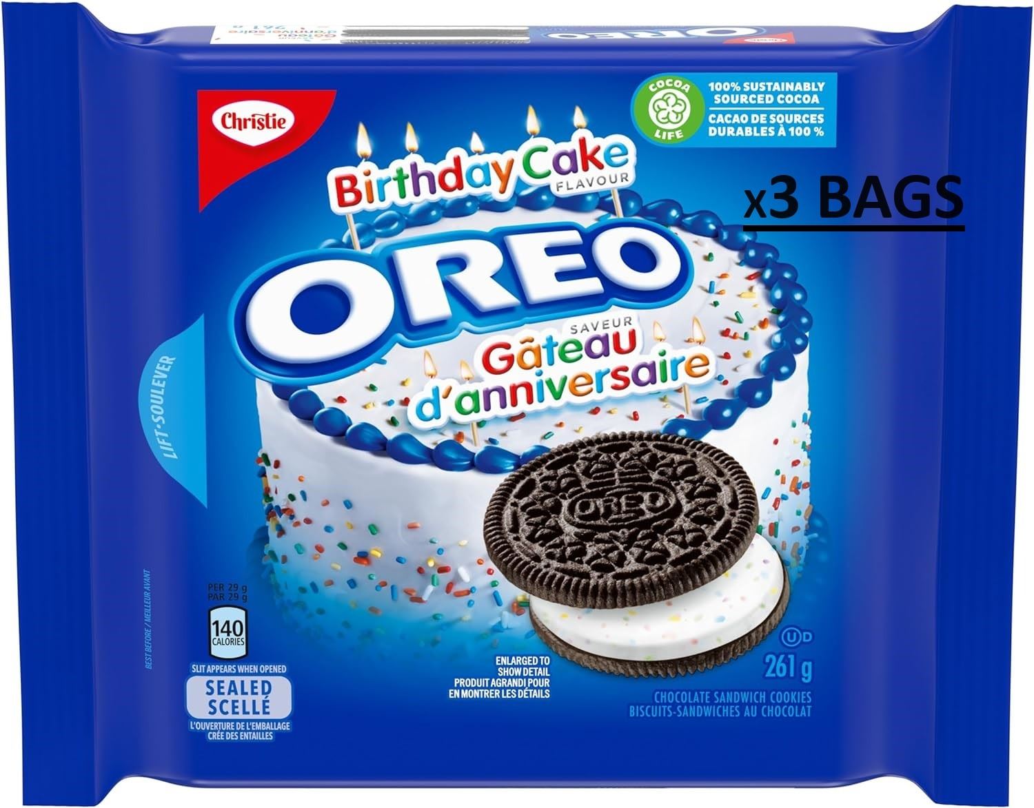 NEW 3 BAGS OF OREO BIRTHDAY CAKE SANDWICH COOKIES