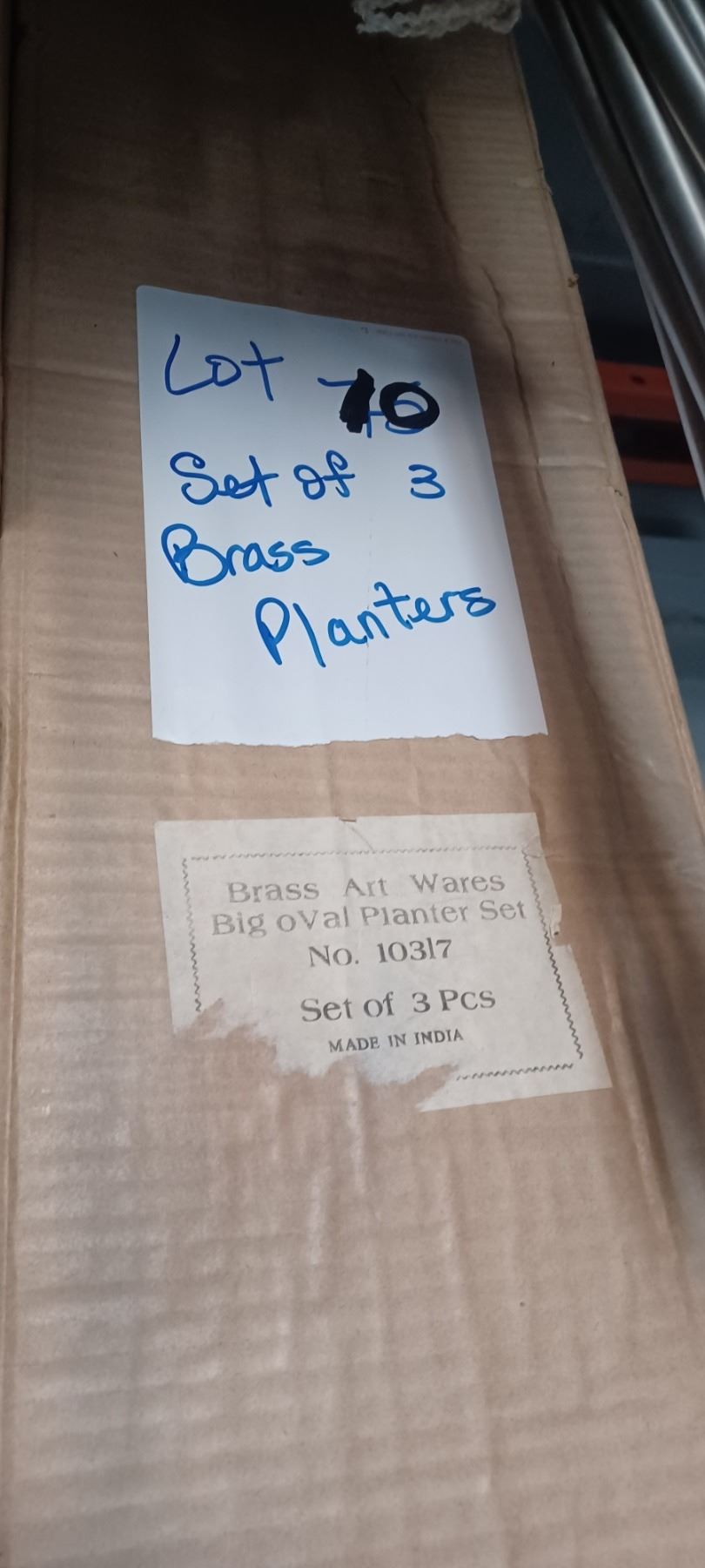 NEW 3 BRASS PLANTER SET, METAL ORNAMENTS, HANDI CAP WALKER AND TUP HANDLE