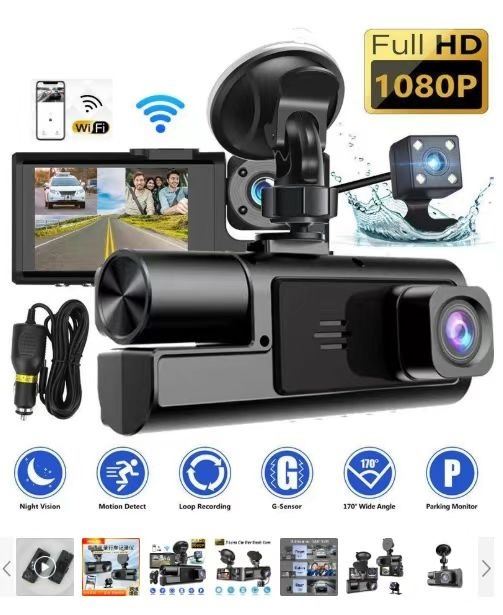 3-CHANNEL THREE-LENS PARKING MONITORING WITH NIGHT VISION DVR. SCAN THE QR CODE FOR WI-FI APP CONNECTIVITY