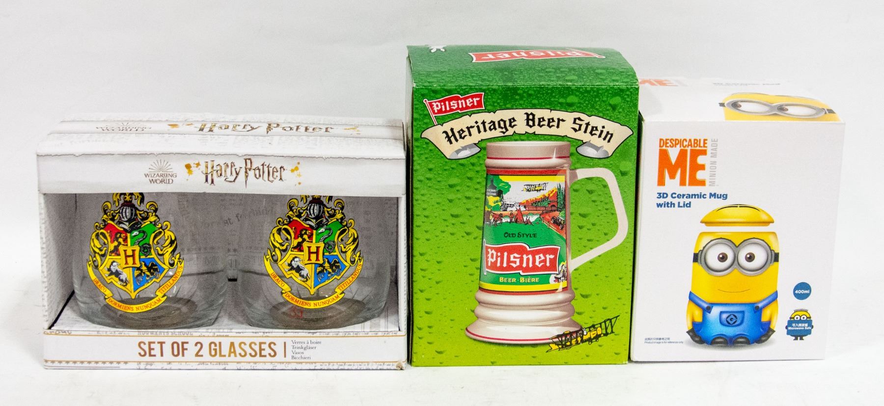 HERITAGE BEER STEIN, 2 HARRY POTTER, DESPICABLE ME 3D CERAMIC MUG WITH LID **ALL ITEMS MUST BE REMOVED BY 5PM SATURDAY, JANUARY 28TH 2023. **ALL REMAINING ITEMS WILL BE SUBJECT TO A $6.00 PER DAY STORAGE CHARGE. ANY ITEMS REMAINING AFTER MONDAY, FEBRUARY 13TH, 2023 WILL BE CONSIDERED FORFEITED. NO REFUNDS WILL BE ISSUED FOR FORFEITED ITEMS. TO SCHEDULE A PICK UP APPOINTMENT CLICK HERE