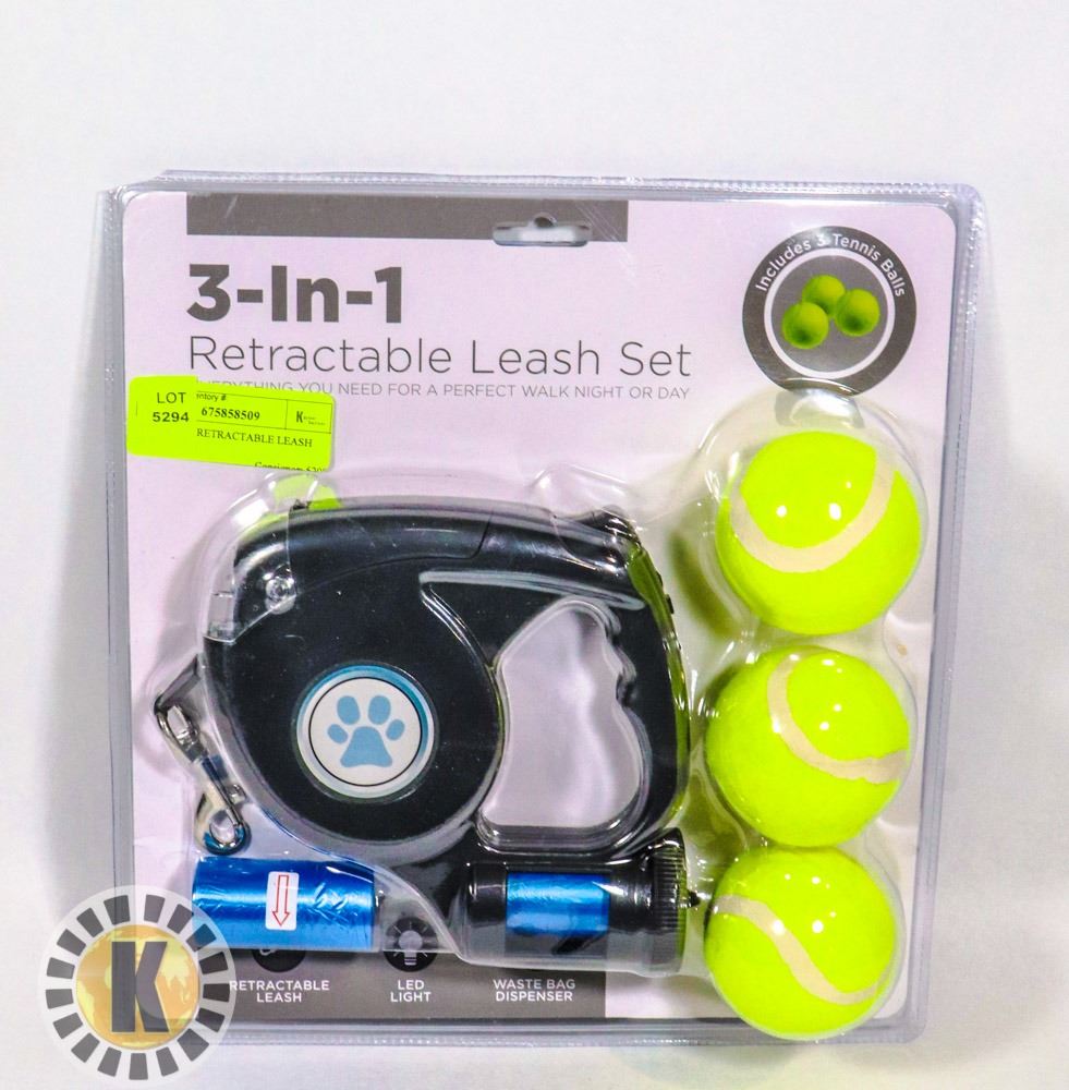 INCLUDES LEASH WITH BUILT IN LED LIGHT, POOP BAGS, AND 3 TENNIS BALLS