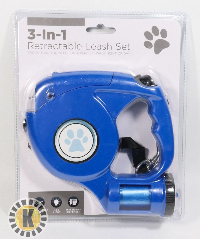 INCLUDES RETRACTABLE LEASH WITH BUILT IN LED LIGHT AND WASTE BAG DISPENSER WITH BAGS***ITEM(S) LOCATED IN LETHBRIDGE ALBERTA