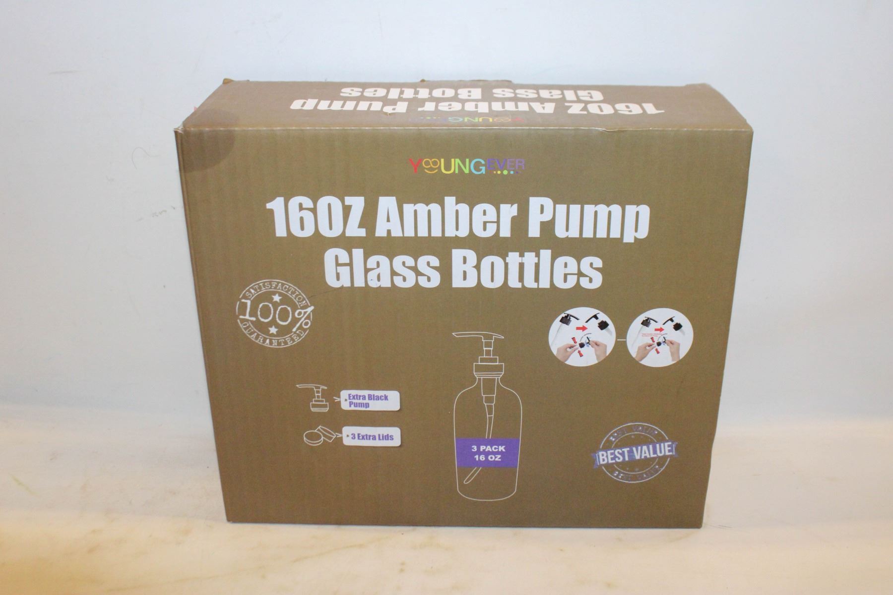 NEW 3 PACK AMBER PUMP GLASS BOTTLES