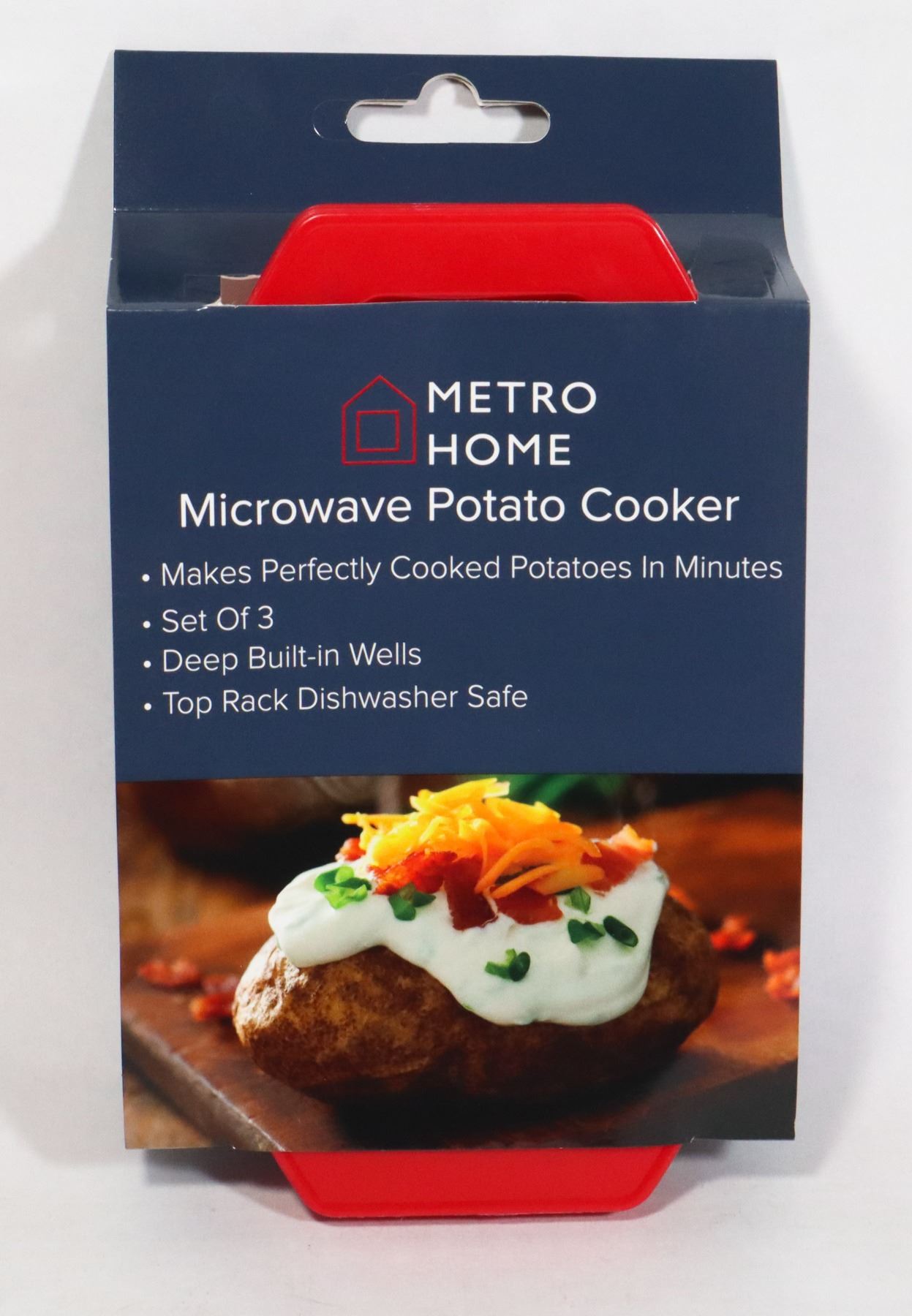 TOP RACK DISHWASHER SAFE. MAKES PERFECTLY COOKED POTATOES IN MINUTES. INSTRUCTIONS FOR USE ON BACK