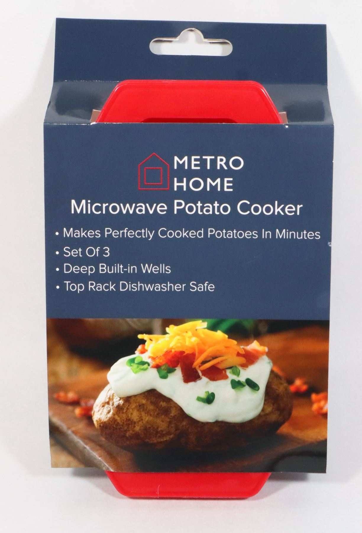 TOP RACK DISHWASHER SAFE. MAKES PERFECTLY COOKED POTATOES IN MINUTES. INSTRUCTIONS FOR USE ON BACK