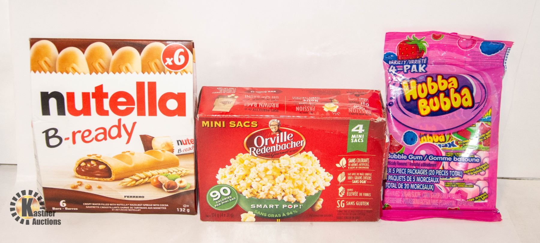 132G NUTELLA STICKS, PACK OF GUM, 124G POPCORN